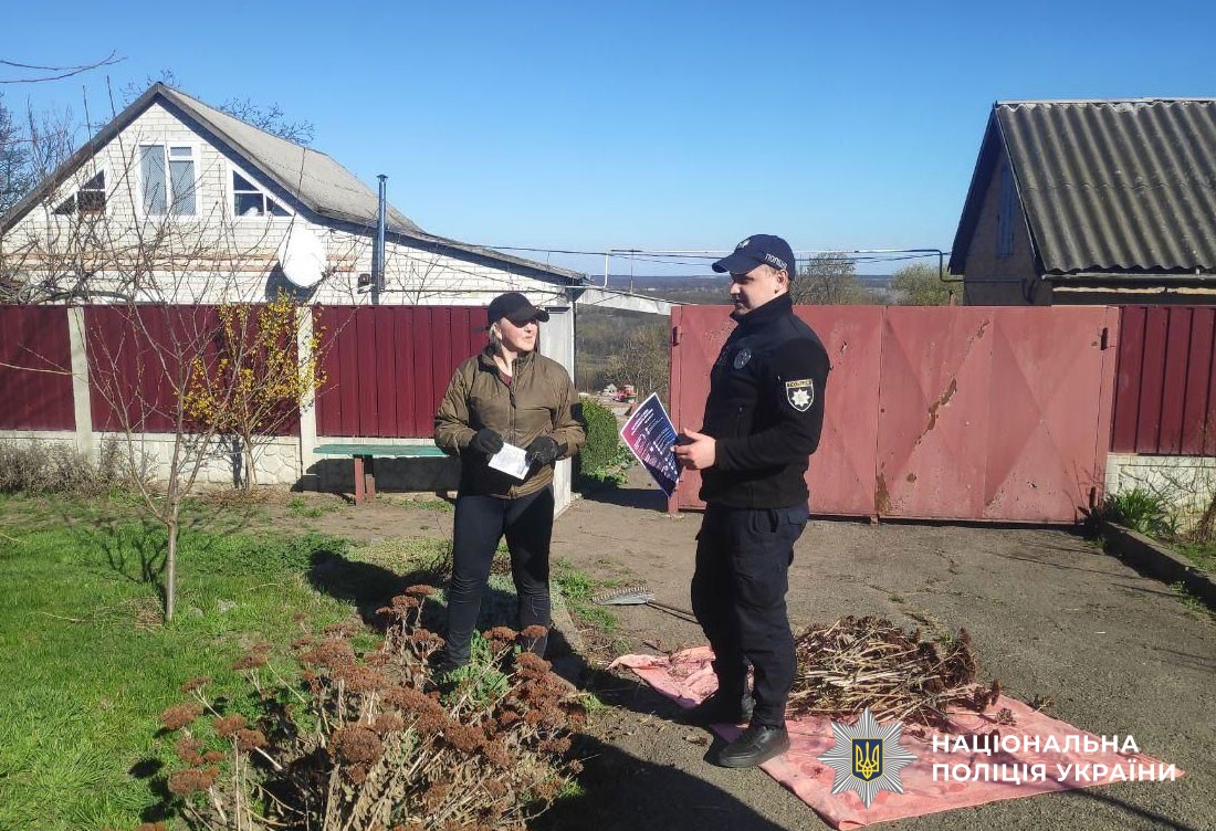 На Полтавщині триває весняна інформаційна кампанія поліції та рятувальників з профілактики пожеж у побуті та природних екосистемах. Правоохоронці роз’яснюють громадянам правила пожежної безпеки та наголошують на неприпустимості спалювати суху рослинність на присадибних ділянках та відкритих територіях. З мешканцями Карлівської міської громади превентивну роботу провели інспектор ювенальної превенції відділу №3 (м. Карлівка) Полтавського райуправління поліції Артем Тимошенко та рятувальник ДСНС Олексій Ковтунов. Правоохоронці нагадали громадянам правила пожежної безпеки у побуті, наголосили на відповідальності за спалювання сухої трави й сміття.