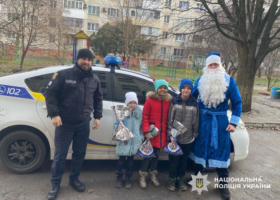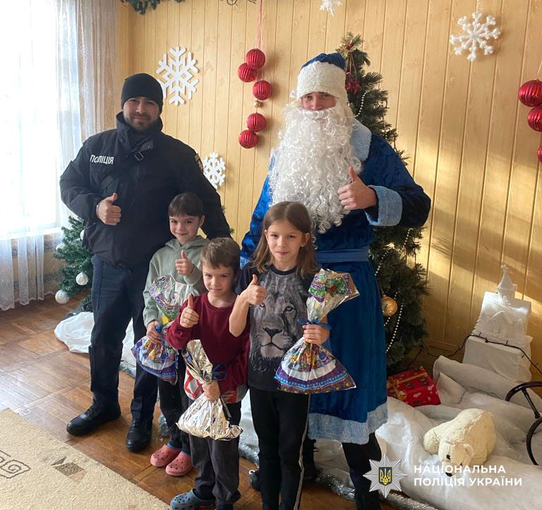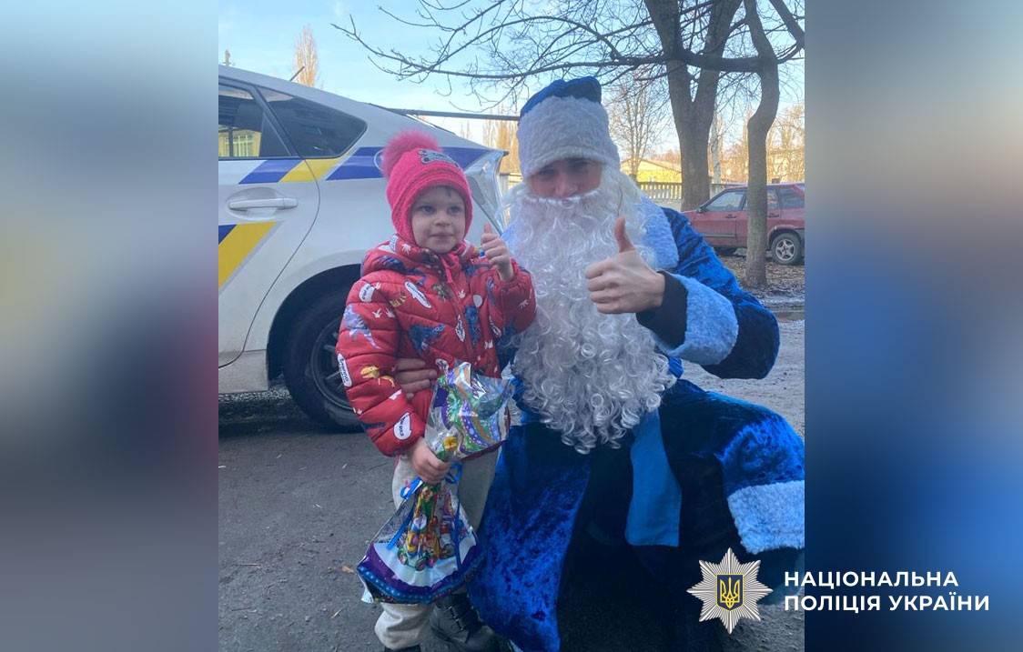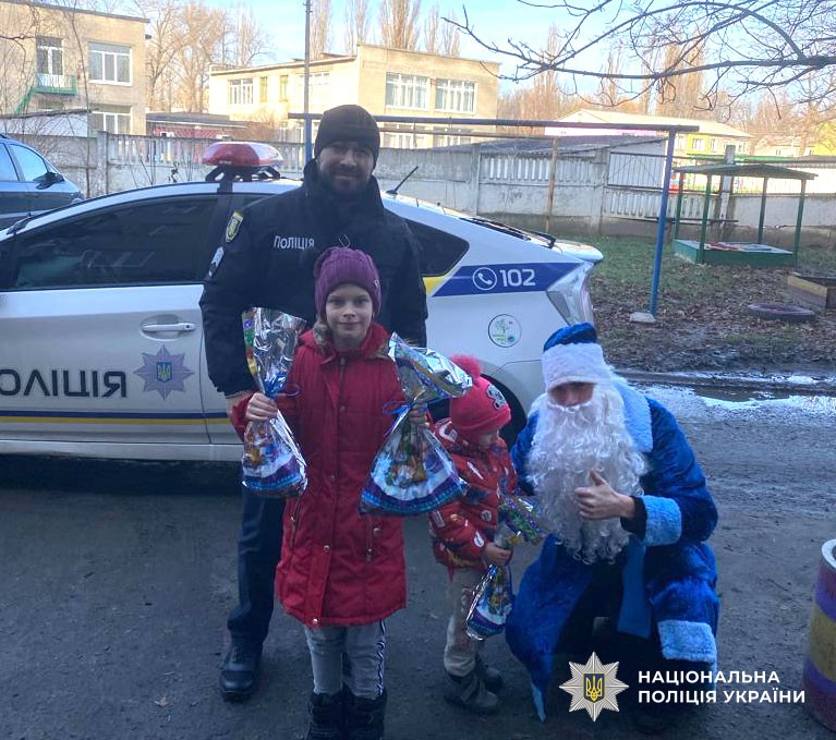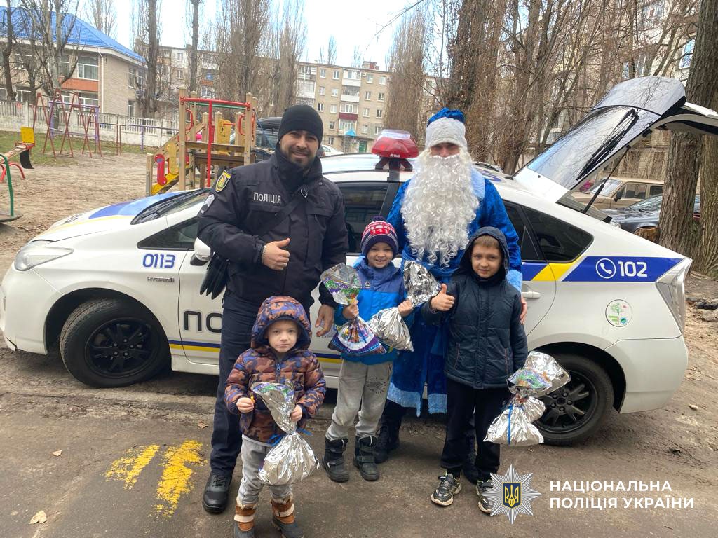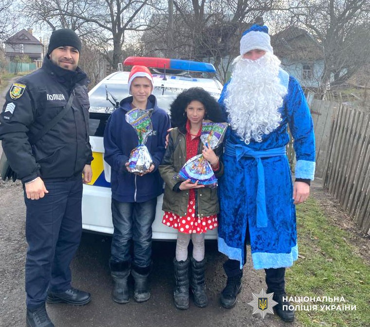 Під час зустрічей поліцейські привітали сім’ї з новорічними святами та вручили дітям солодкі подарунки.