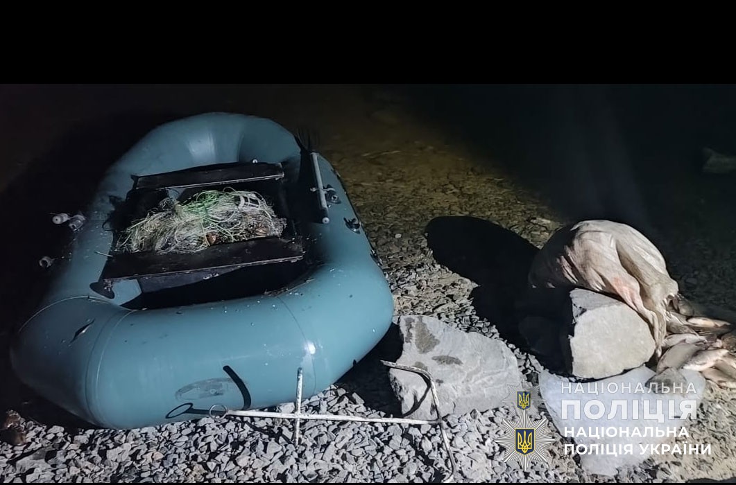 «Під час профілактичного рейду 11-го березня близько 19-ї години працівники сектору поліцейської діяльності на воді виявили двох чоловіків (1972 та 1974 років народження), які за допомогою риболовної сітки та з використанням гумового човна виловили майже 40 кілограмів свіжовиловленої риби. За попередньою оцінкою фахівців, правопорушники завдали збитків державі на суму понад 230 тисяч гривень. Біоресурси та браконьєрські знаряддя лову вилучені. Розпочато досудове розслідування».