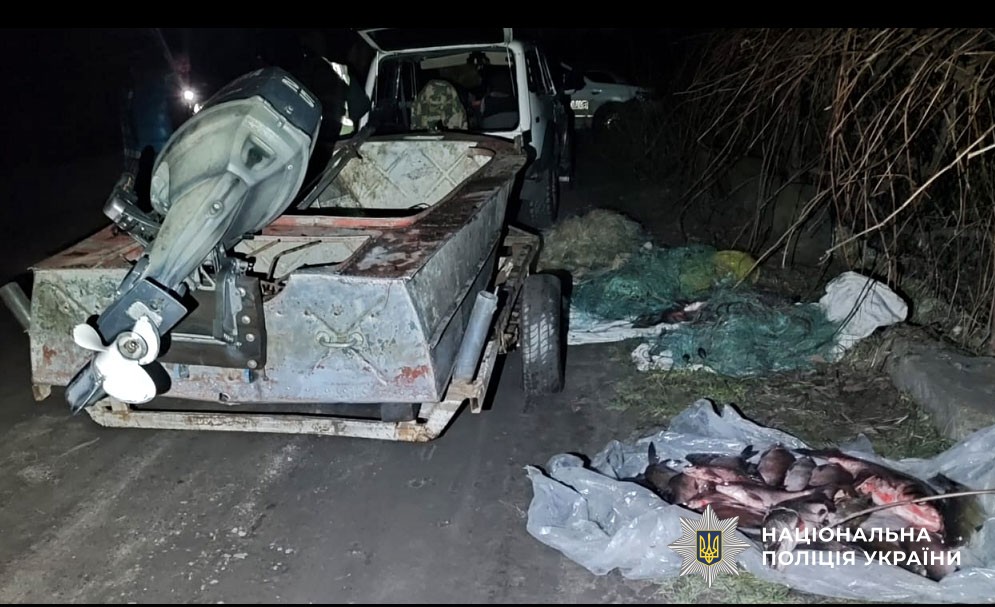 «Під час профілактичного рейду 2-го січня близько 5 години в районі села Самусіївка працівники сектору поліцейської діяльності на воді виявили двох чоловіків, 1975 та 1973 років народження, які знаходилися в автомобілі «Нива». Під час поверхневого огляду поліцейські виявили в причепі авто човен з навісним двигуном, майже 30 кілограмів риби та 400 метрів сіток. Наразі човен, риба та сітки вилучені. За попередньою оцінкою фахівців, завдані державі збитки становлять понад 62 тисячі гривень».