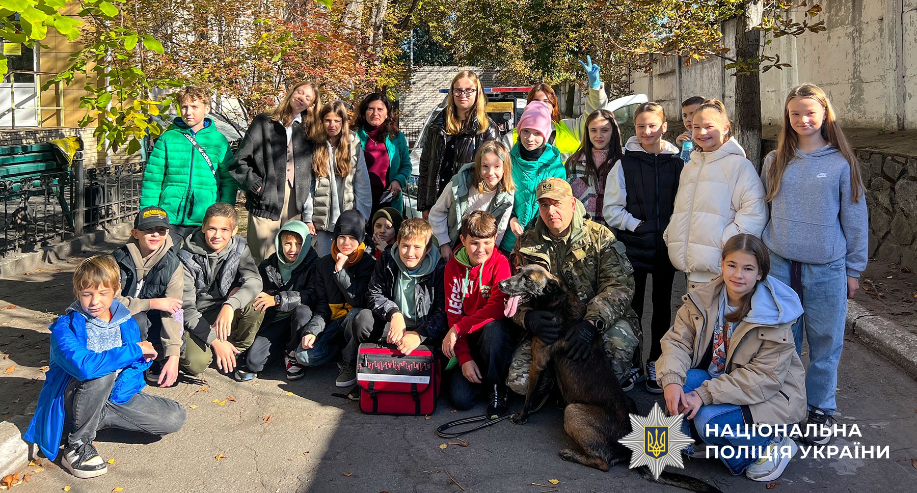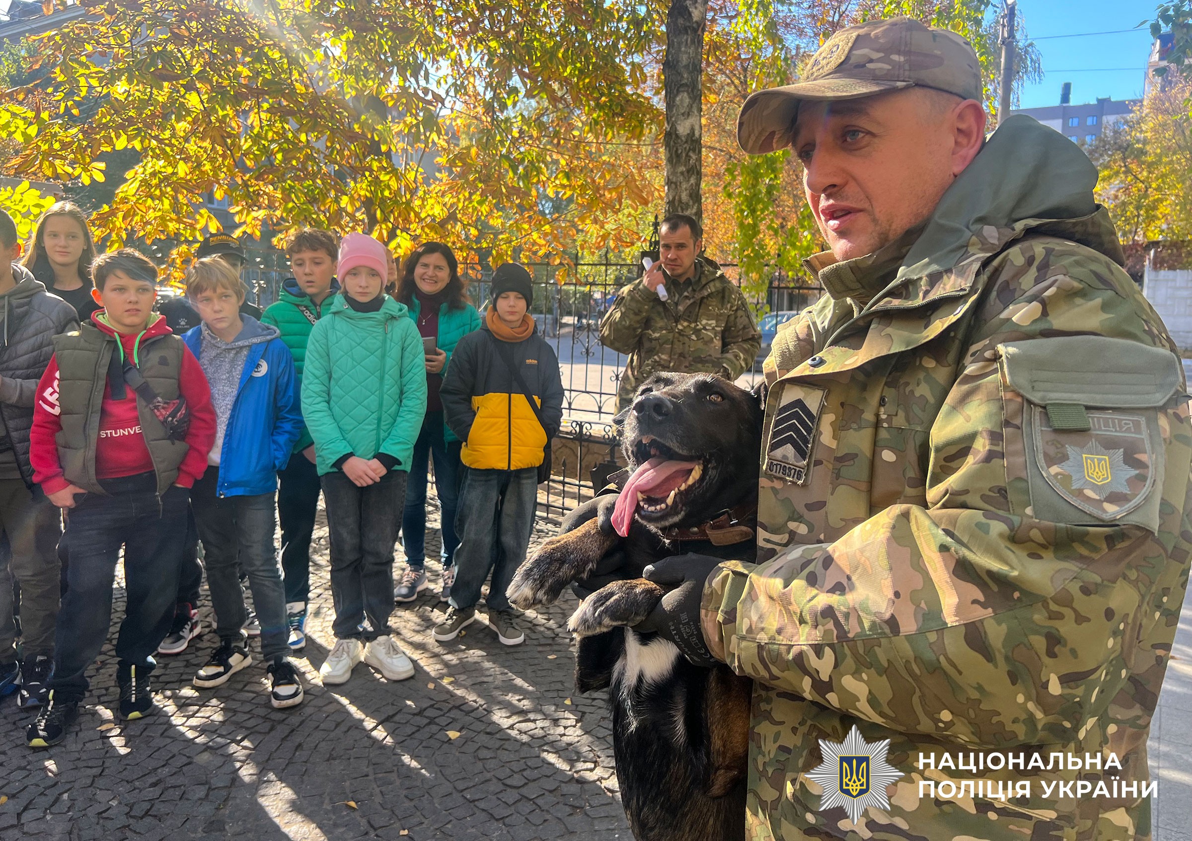 Під час спілкування діти ознайомилися з азами дресури службових собак, специфікою роботи спеціалістів-криміналістів та роботою інших галузевих служб поліції.