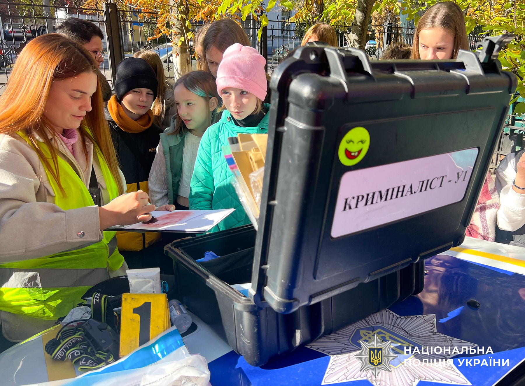 Діти дізналися про роботу кінологів, познайомилися зі службовим собакою Джекпотом, який продемонстрував присутнім свої вміння, та спробували себе в ролі криміналістів.