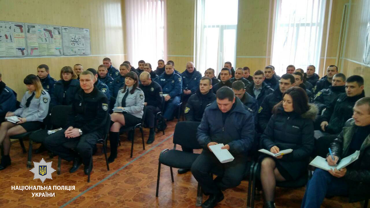 Після шикування, під час якого було перевірено наявність службових посвідчень, відповідність форменого одягу, комплектацію тривожних валіз і інструктажу, для особового складу в актовому залі відділу поліції начальником Кобеляцького відділу поліції Володимиром Феданом та начальником сектору моніторингу Кобеляцького ВП ГУНП в Полтавській області Романом Резніком проведено службове заняття на якому розглянуто питання: «Дії працівників поліції під час введення спеціальних поліцейських операцій.