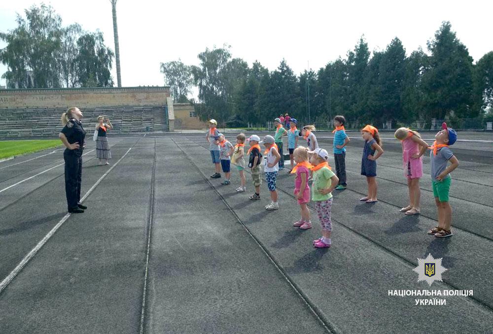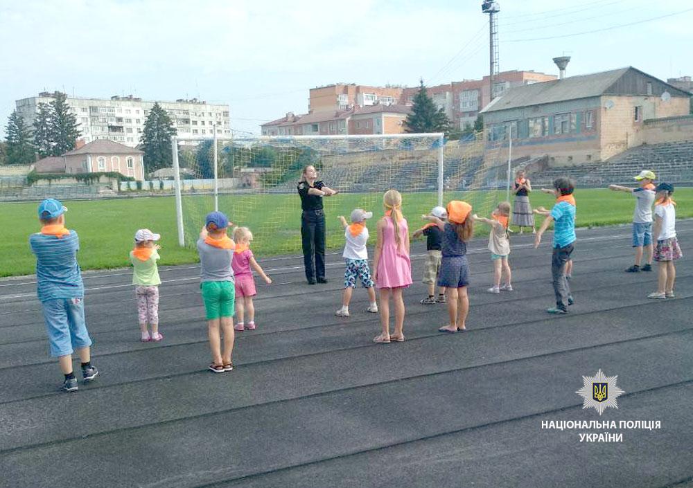 Разом із лейтенантом поліції, на стадіоні «Центральний» м. Лубни, діти виконали комплекс загальнозміцнюючих вправ.