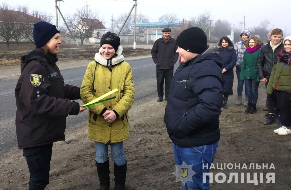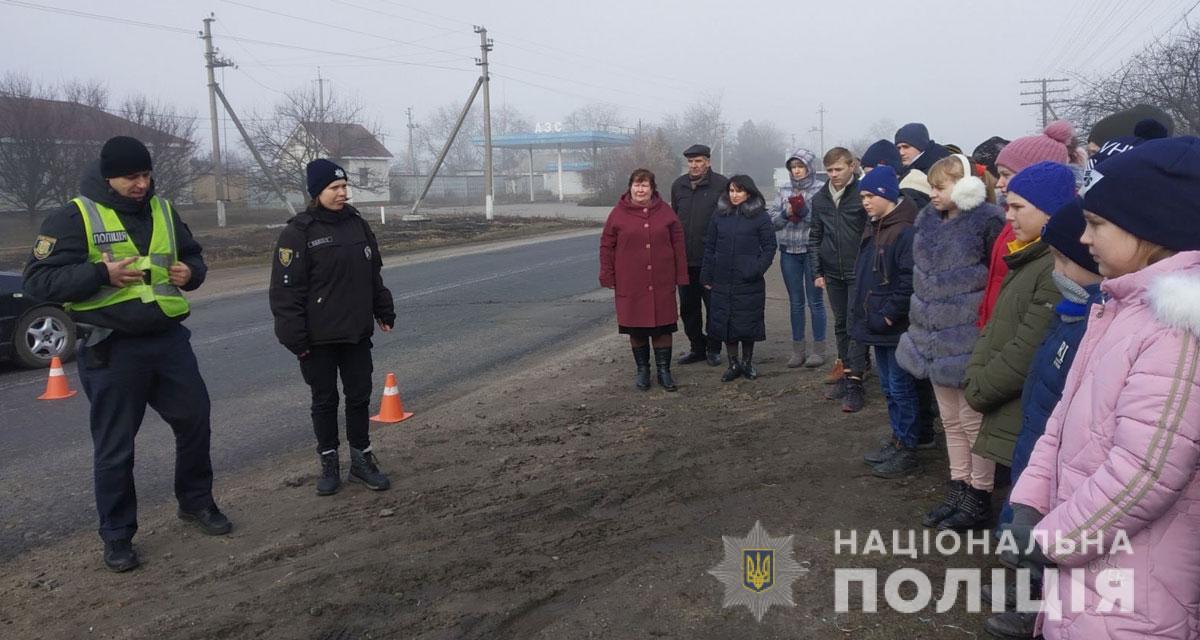 Профілактичні заходи з безпеки дорожнього руху для учнів Гориславського НВК Кременчуцького району провели інспектор ювенальної превенції районного відділення поліції Аліна Мухомор та працівники сектору реагування патрульної поліції району.