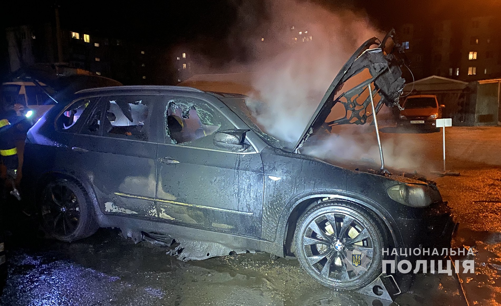 Отримавши інформацію про загоряння автівки, на місце події прибула слідчо-оперативна група поліції, яка встановила, що на закритому охоронюваного майданчику відбулась пожежа автомобіля «БМВ Х5», який належить мешканці Кременчука, 1998 року народження. Полум'ям також було пошкоджено автомобіль «Субару Форестер», що був припаркований поруч. Авто належить кременчуківцю, 1987 року народження.