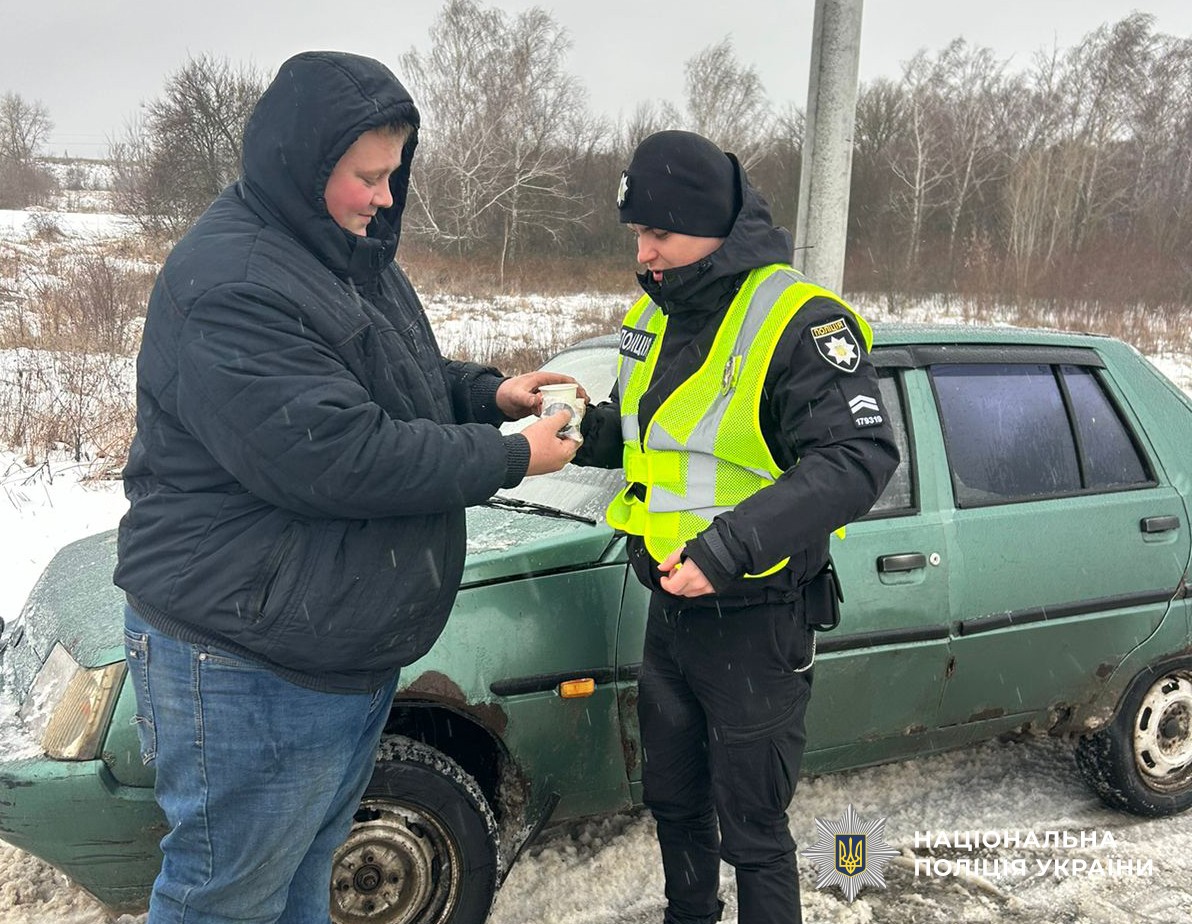 Також теплим чаєм водіїв зігрівали працівники сектору поліцейської діяльності №2 (с-ще Чутово) Полтавського районного управління поліції. Поліцейські допомагали водіям долати найскладніші ділянки проїзної частини на території своєї громади.