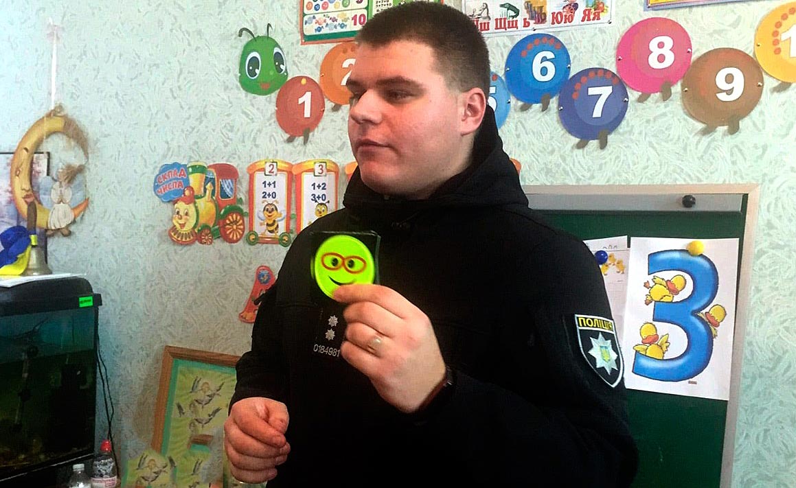 Насамкінець зустрічі діти отримали від поліцейських світловідбивні флікери, щоб закріпити їх на своєму одязі й бути помітними в темряві.