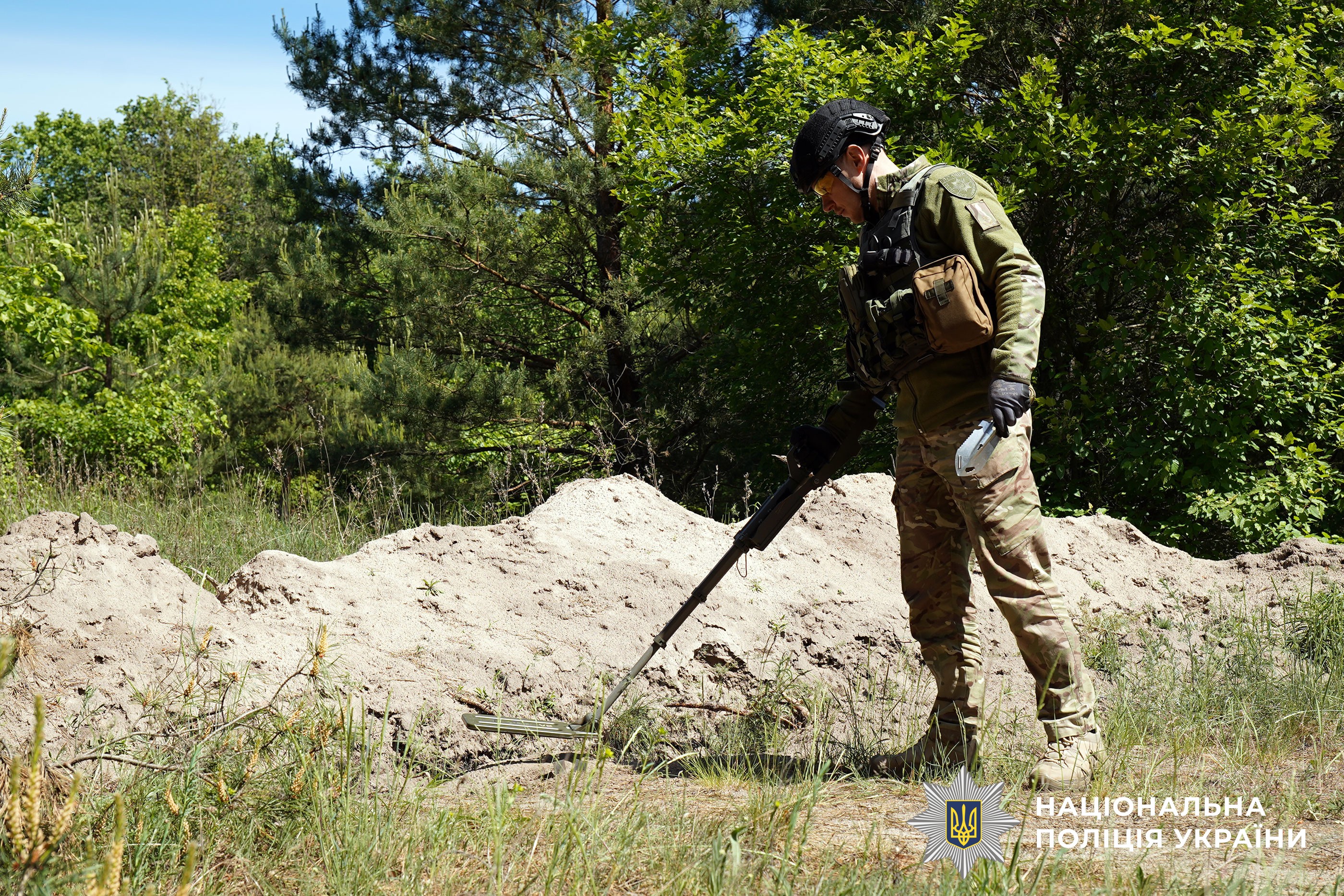• позначити місце небезпеки яскравою тканиною, гілкою, стрічкою або видимим орієнтиром, огородити небезпечну територію мотузкою або підручними матеріалами (але не можна вбивати у землю кілки, бо поряд можуть бути ще снаряди);