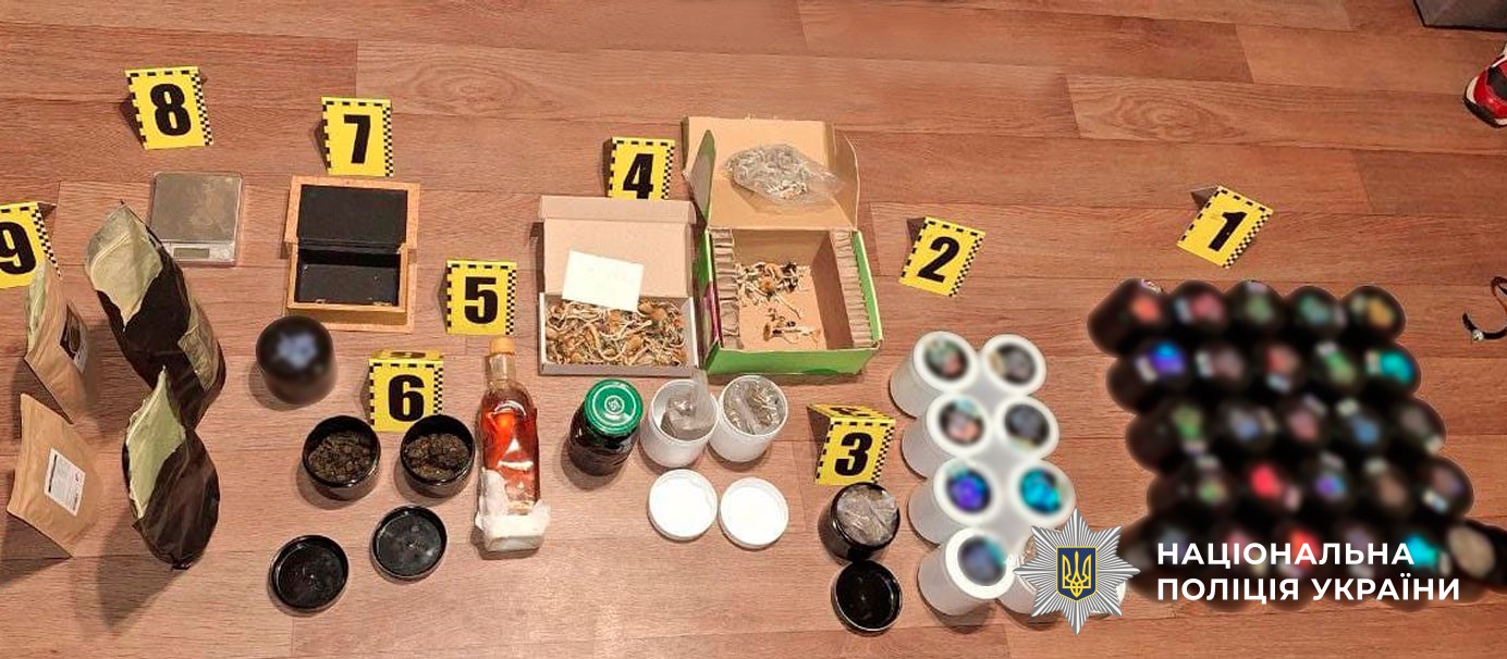 Під час санкціонованих обшуків слідчі вилучили близько 3000 доз канабісу і 1000 мл екстракту, більше ніж 150 доз псилоцибіну, понад 30 ЛСД-марок та 200 грамів кратому. Їх орієнтовна вартість за цінами «чорного ринку» перевищує 500 тисяч гривень. Також вилучено гроші, банківські картки, мобільні телефони, ваги й матеріали для фасування.