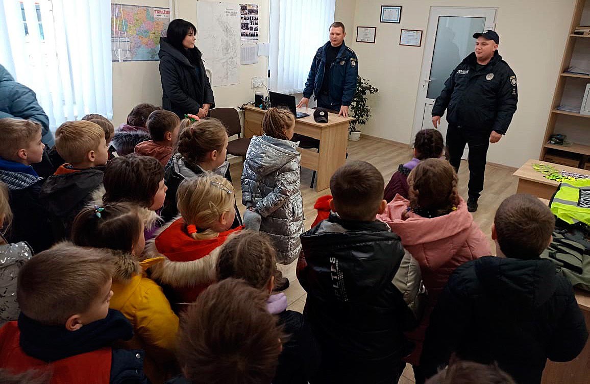 Офіцери громади капітан поліції Сергій Климань та лейтенант поліції Дмитро Матюх, розповіли першачкам основні сигнали світлофора та пояснили правила для пішоходів. Поліцейські продемонстрували школярам елементи, які відбивають світло та пояснили чому ці елементи так важливі для особистої безпеки під час руху у нічний час.