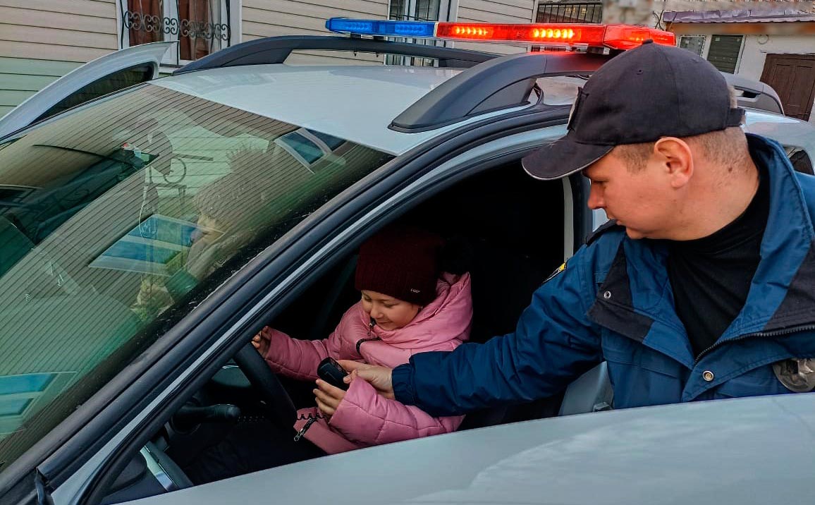 Також учні мали змогу познайомитися зі службовими автомобілями поліцейських та випробувати спеціальні звукові та світлові сигнали автомобіля.