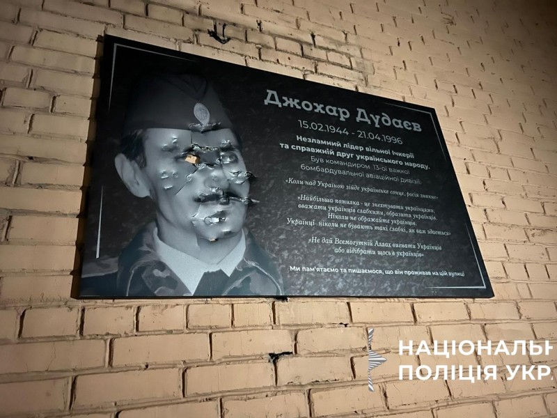 У ході проведення першочергових слідчих дій встановлено, що двоє зловмисників пошкодили меморіальну дошку, встановлену на честь Джохара Дудаєва. Наразі слідчими та оперативниками вживаються заходи щодо встановлення правопорушників та притягнення їх до юридичної відповідальності.