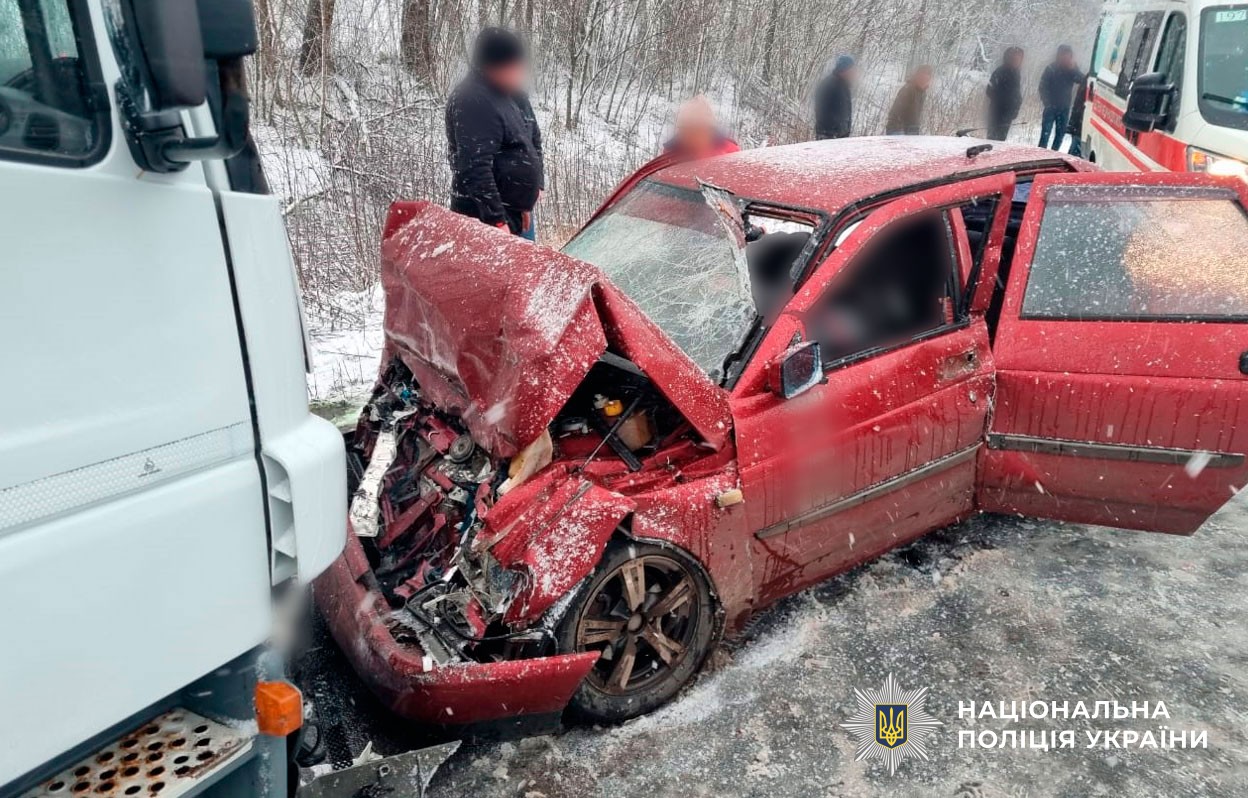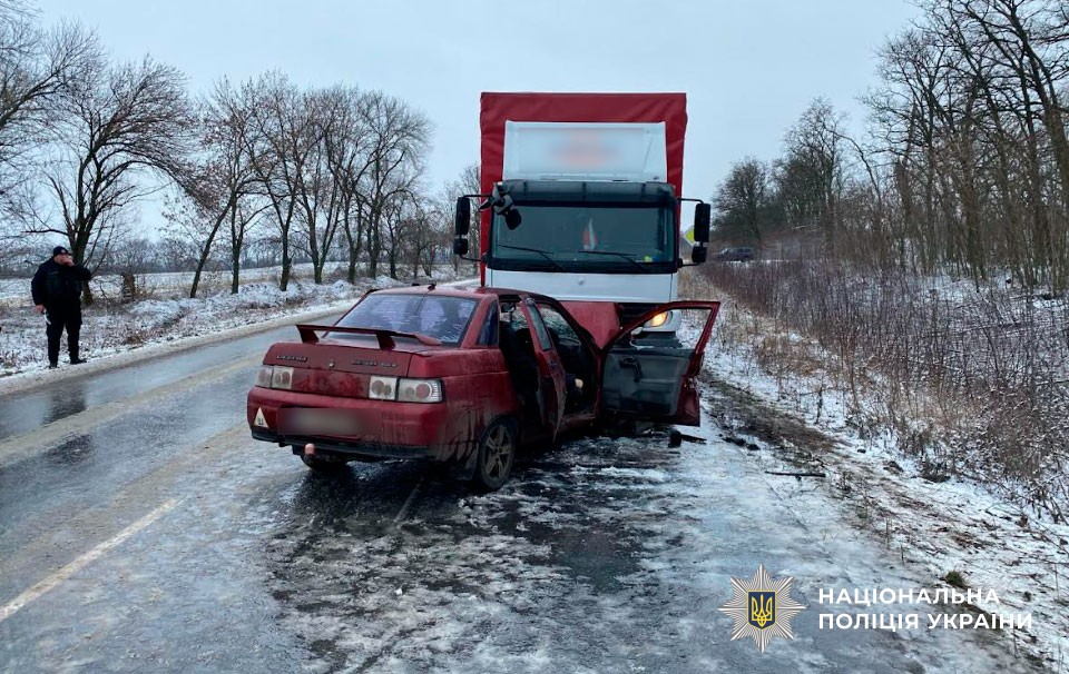 Інформація про ДТП надійшла до відділу № 1 Кременчуцького райуправління поліції (м. Глобине) 21 лютого близько 08:00. За межами села Жуки відбулося зіткнення вантажівки Mercedes-Benz та автомобіля ВАЗ 2110, в якому перебували водій і троє пасажирів.