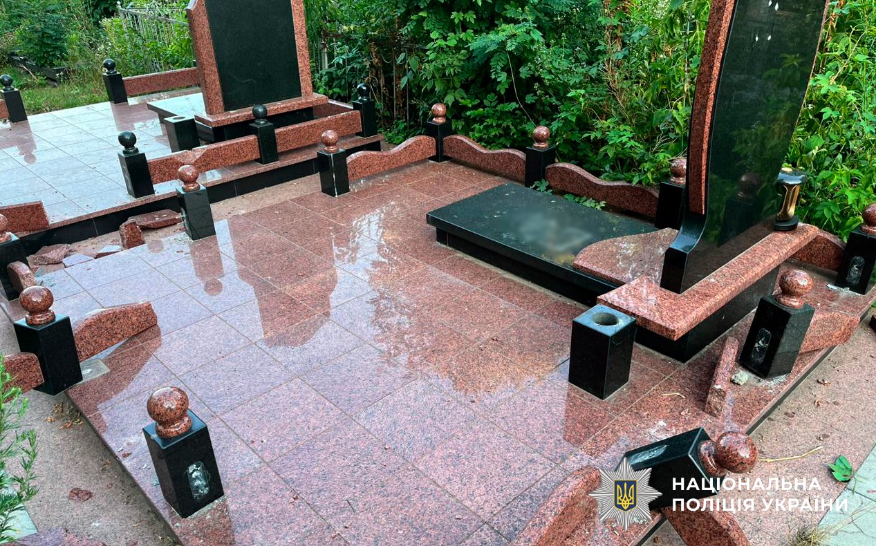 За попередньою версією слідства встановлено, що 10 липня у період із 16-ї до 18-ї години на кладовищі Київського району Полтави невідома особа пошкодила три місця поховання людей. Наразі правоохоронці розшукують особу, яка причетна до цього злочину.