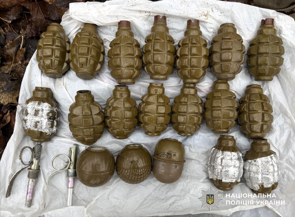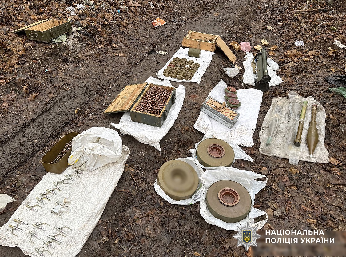«Під час огляду місця події спеціалісти вибухотехнічної служби вилучили близько 58 ручних гранат різного типу, близько 20 запалів та підривачів, 4 міни, 3 з яких протитанкові, ручний протитанковий гранатомет та понад 1600 набоїв різного калібру».