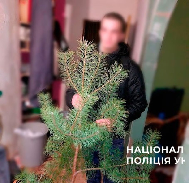 Хвойне дерево вподобав 26-річний полтавець, який мешкає неподалік кав’ярні на Подолі. У ніч на 30 грудня чоловік вирвав «ялинку» з вазона, що прикрашав подвір’я закладу харчування.