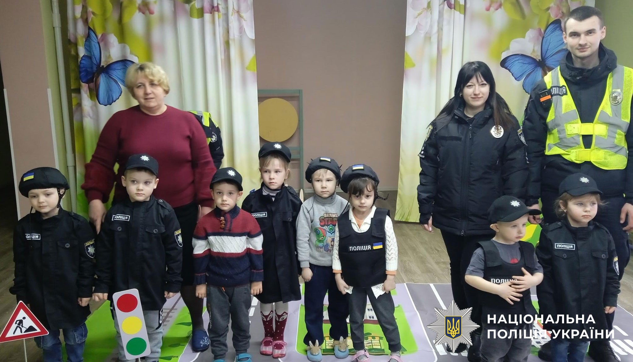 У цікавій ігровій формі маленькі слухачі дізналися від поліцейських про основні правила поведінки на дорогах та поряд з ними, про необхідність повідомляти батьків чи інших дорослих про небезпечні або ж нетипові ситуації у повсякденні дошкільнят.