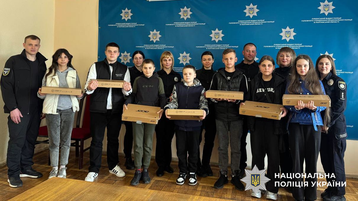 Дітям Лубенщини передали ноутбуки, книги та смаколики від громадської організації «Журавель». Подарунки родинам вручили капелани громадського формування «Капеланський патруль» та поліцейські Лубенського райвідділу поліції. Завдяки ініціативній підтримці та сприяння партнерів вдалося подарувати радість та щасливі емоції дітям з родин, чиї батьки мужньо боронять нашу країну на фронті, та загиблих воїнів, які віддали своє життя, захищаючи рідну землю від ворога, а також сімей, які опинилися у складних життєвих обставинах.