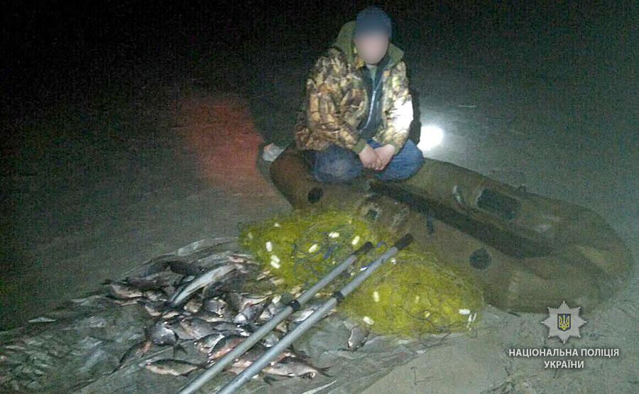 Близько першої ночі 11-го квітня рейдовою групою сектору водної поліції Кременчуцького відділу та інспекторами рибоохоронного патруля виявлено факт незаконного зайняття рибним добувним промислом 23-річним мешканцем Глобинського району.