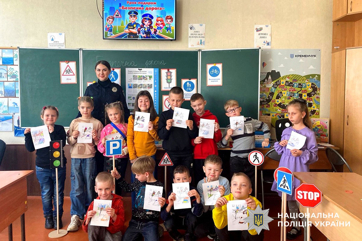 Пізнавальні інтерактивні заняття у рамках Всеукраїнського тижня безпеки дорожнього руху провели офіцери служби освітньої безпеки Кременчуцького райуправління поліції - Альона Рослякова, Яна Нестеренко, Катерина Багрінцева, Максим Кицманюк, Марина Єрьоміна, Олена Лепесій та Анастасія Магеря.