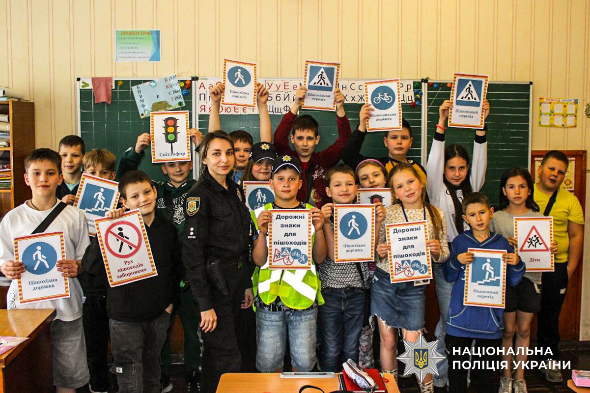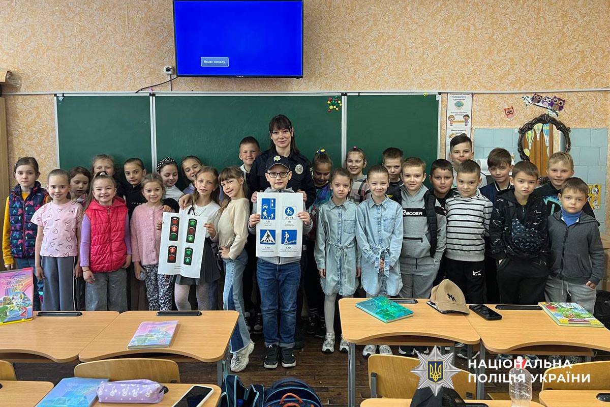 Поліцейські роз’яснили школярам правила дорожнього руху для пішоходів та велосипедистів. Акцентували на безпечній поведінці поблизу проїзних частин.