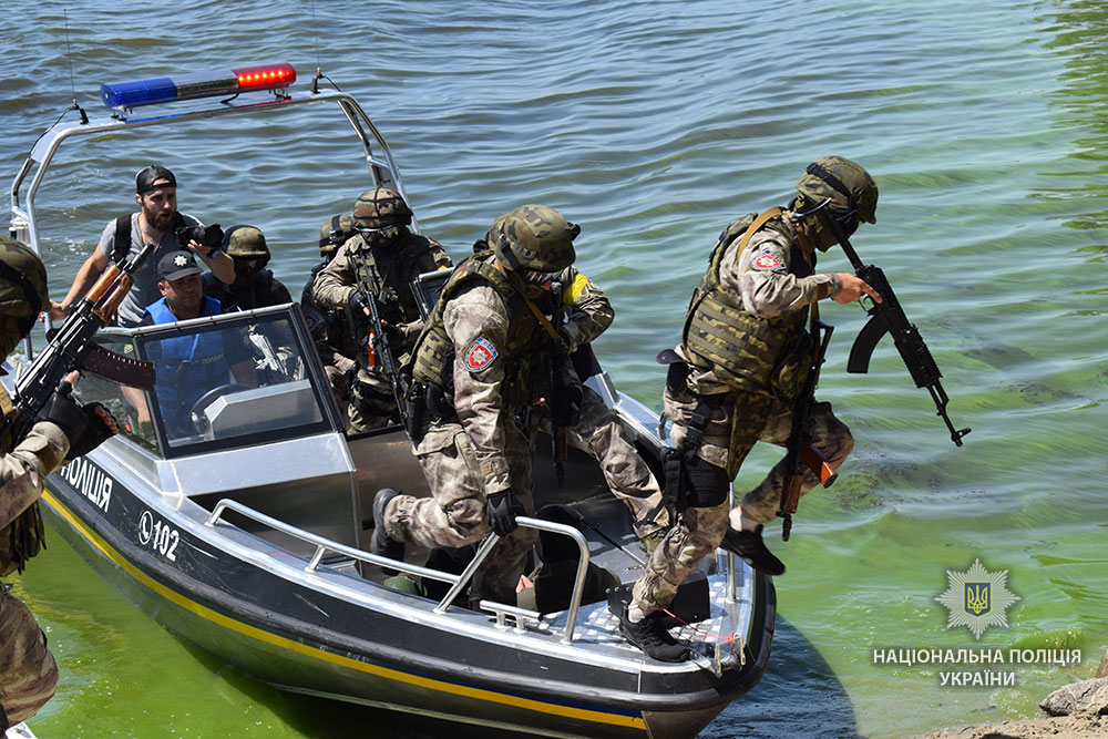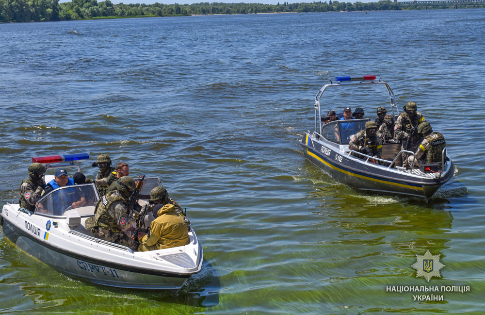 У Кременчуці пройшли масштабні навчання спецпризначенців поліції по звільненню захопленого плавзасобу