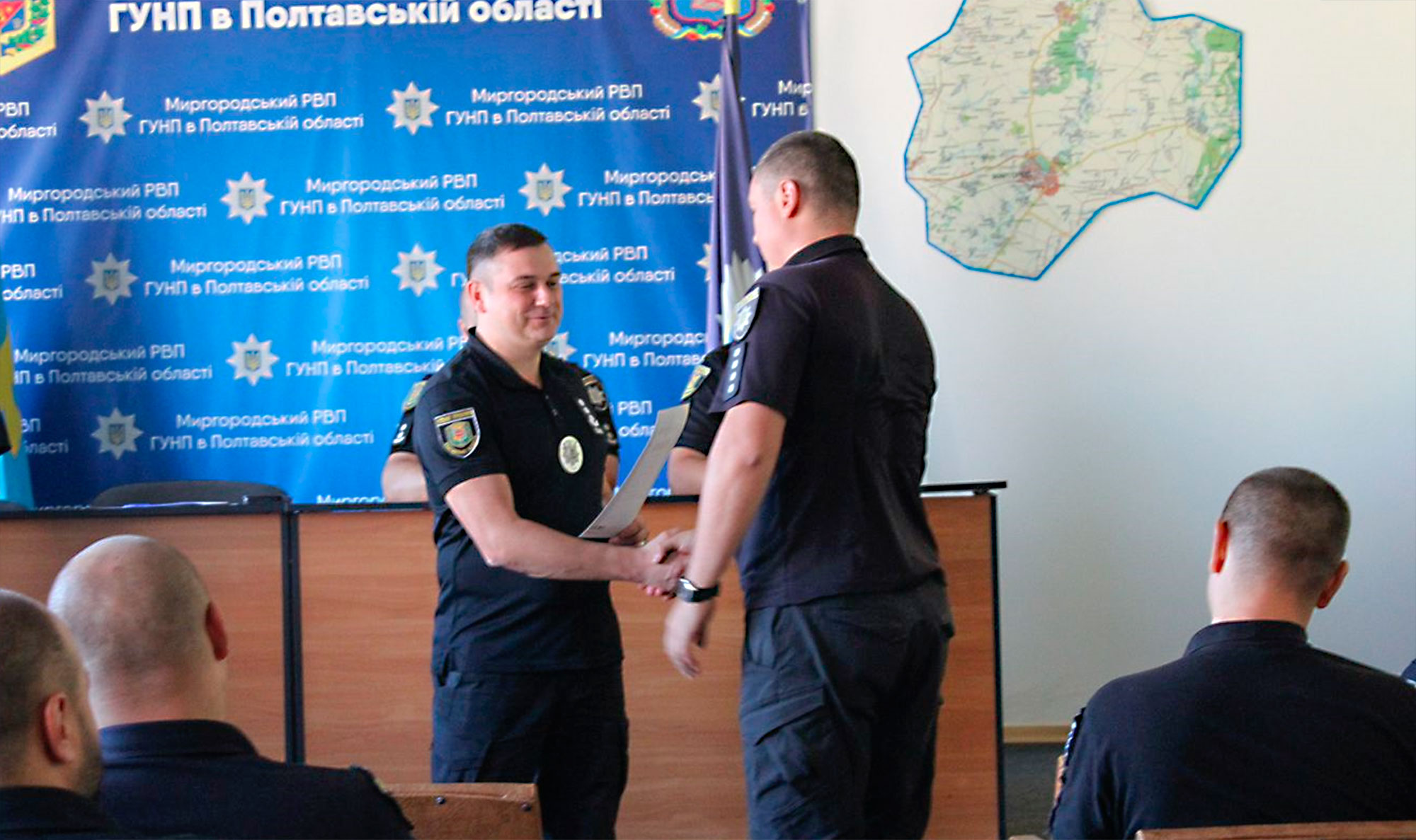 Начальник Миргородського райвідділу поліції Віталій Ярмолюк відзначив оперативні дії офіцерів. Відомчі нагороди правоохоронці отримали до Дня захисників та захисниць України.