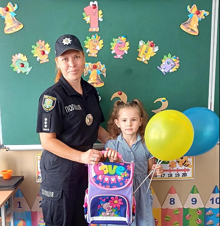 А також привітали з Днем знань синочка поліцейського. Правоохоронці передали хлопчику канцелярське приладдя та вітання від тата, який у складі зведеного загону бере участь у стабілізаційних заходах на деокупованих територіях.