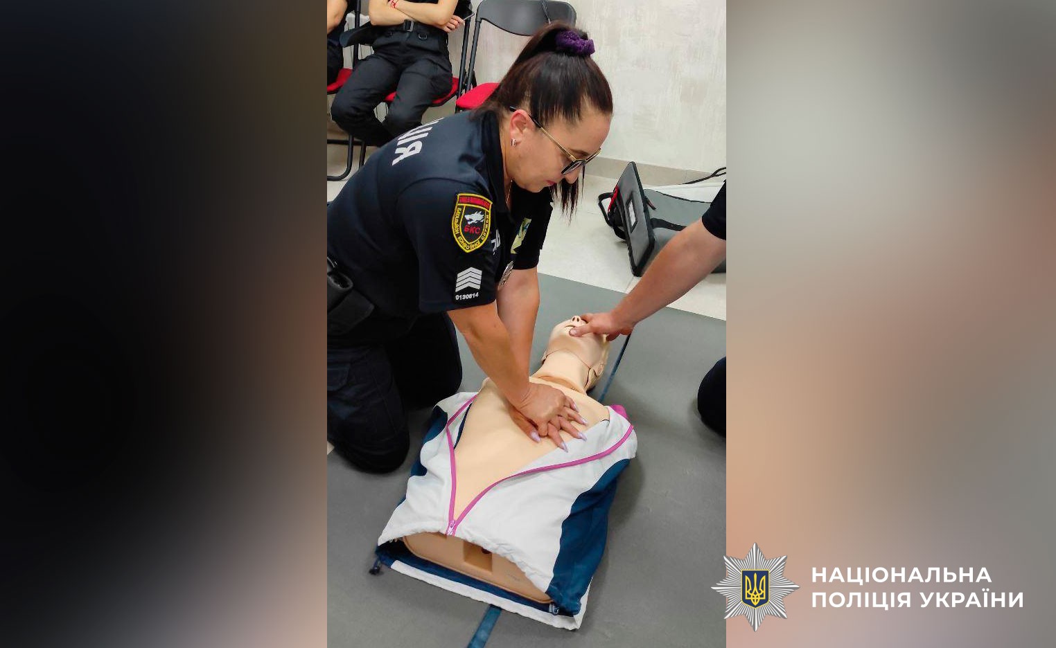 Правоохоронці відпрацювали базові навички надання допомоги у надзвичайних ситуаціях – від зупинки кровотечі та серцево-легеневої реанімації до стабілізації постраждалого до приїзду медиків.