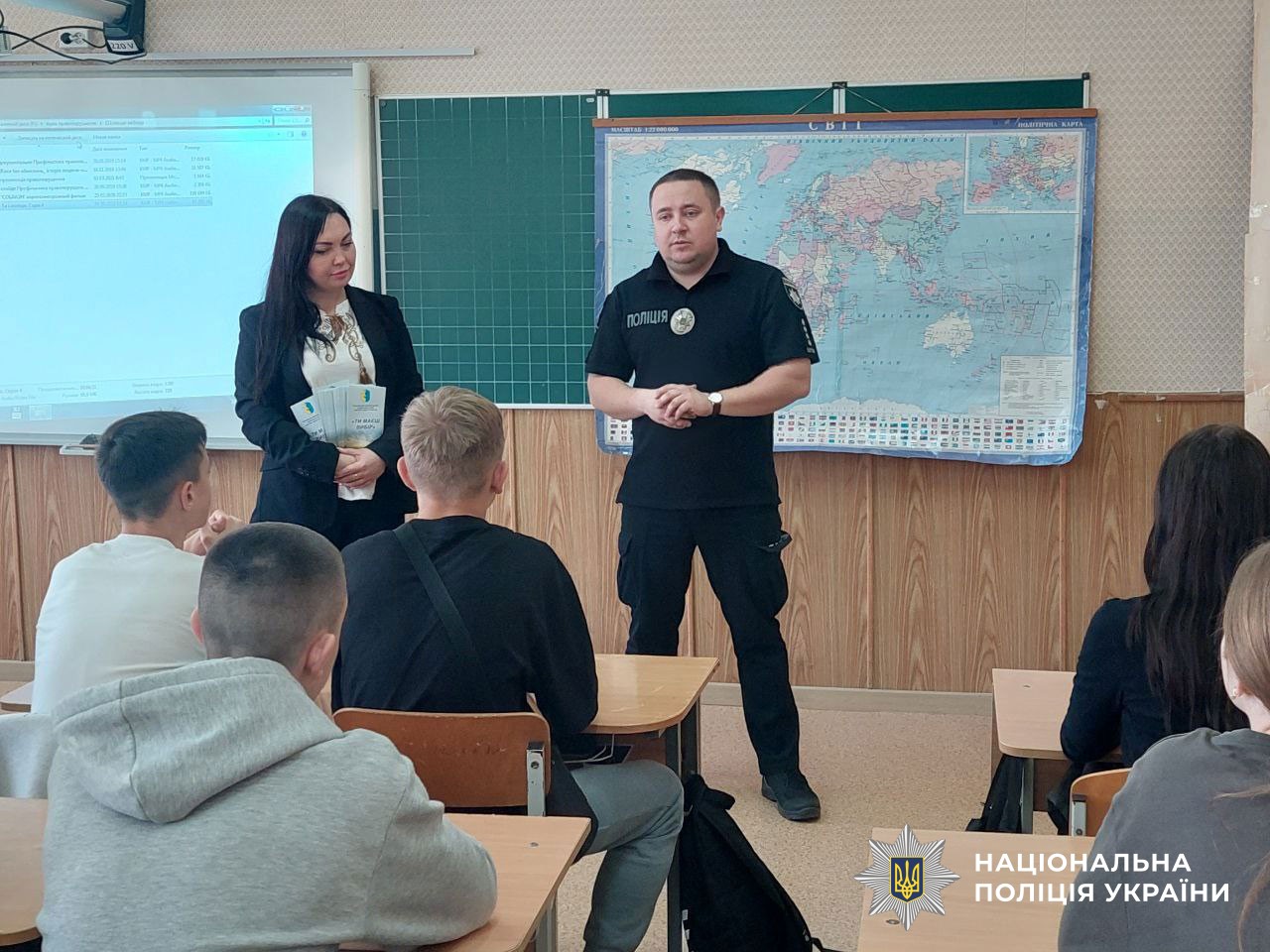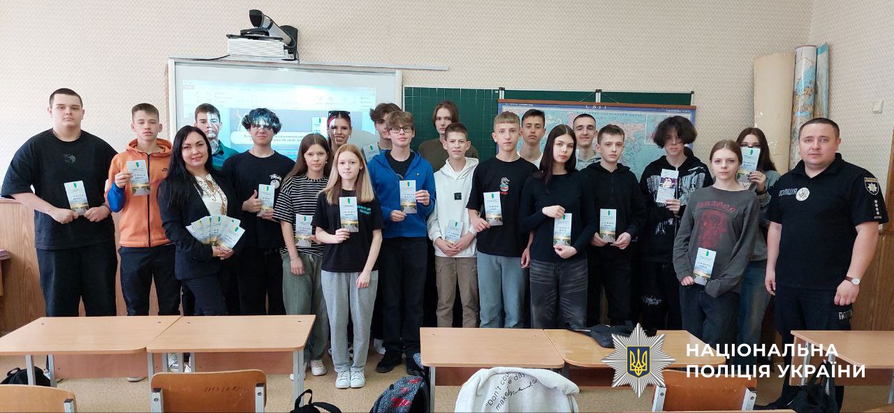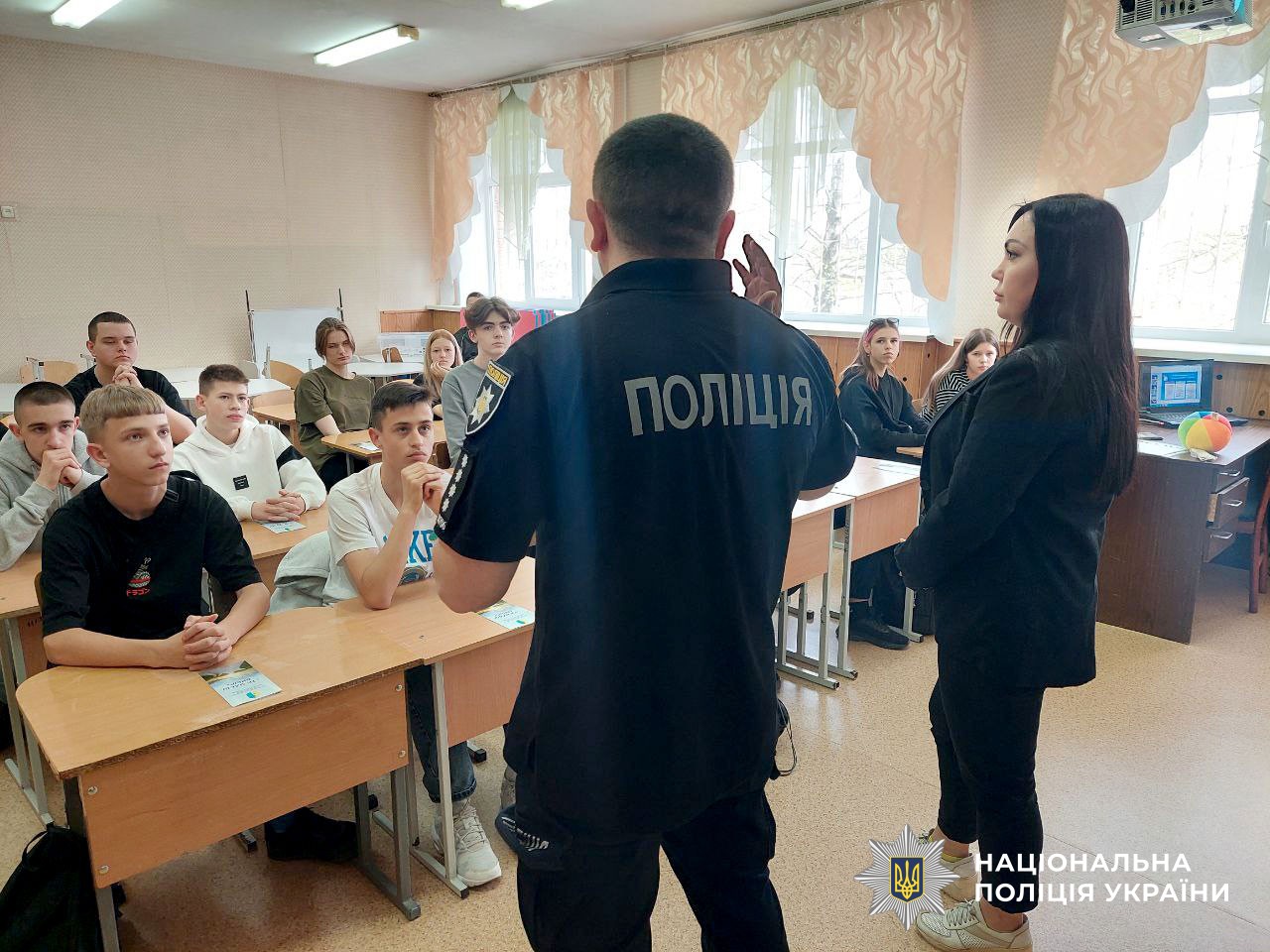 Під час уроку безпеки поліцейський розповів підліткам про існуючі ризики в умовах воєнного стану. Акцентував на необхідності дотримуватися заходів безпеки в побуті та під час дозвілля. Закликав дітей вести здоровий спосіб життя, займатися спортом та за жодних обставин не вживати наркотичні речовини, алкогольні та тютюнові вироби.