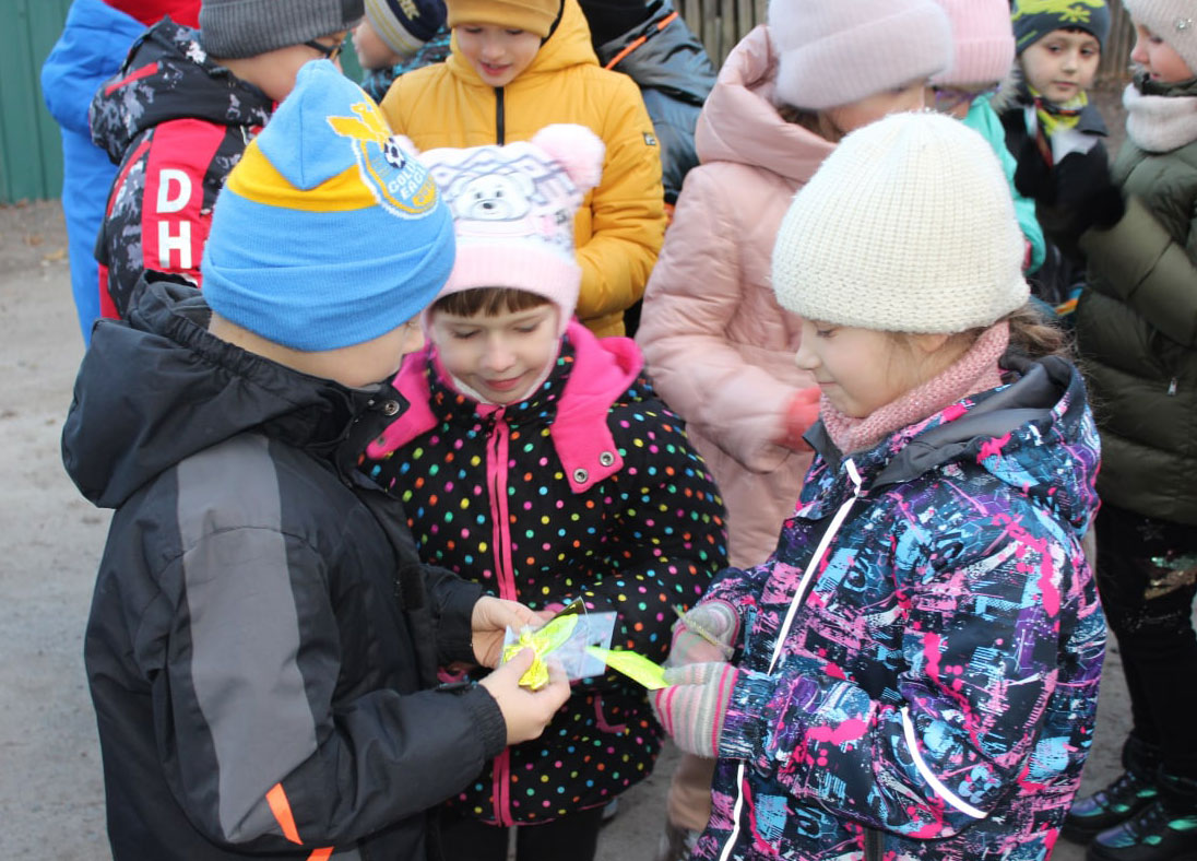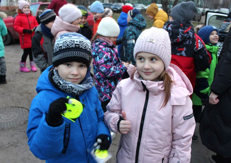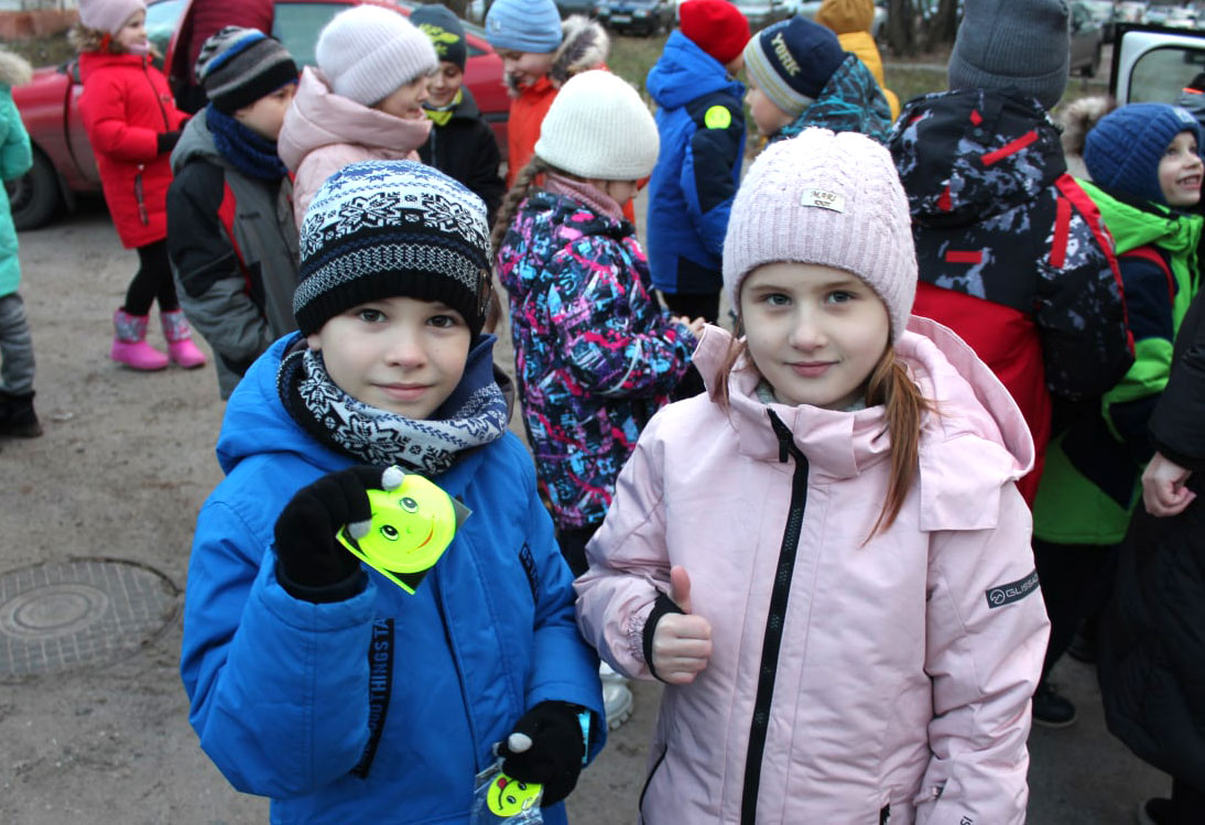 Також офіцери поліції нагадали школярам про правила дорожньої безпеки, акцентувавши увагу на особливостях перетину пішохідного переходу в темний час доби та обов’язковому використанні світловідбивних елементів. Кожній дитині поліцейські вручили світловідбивні наліпки, які потім діти із задоволенням розмітили на рюкзаках та одязі, щоб не розгубитись у темряві.