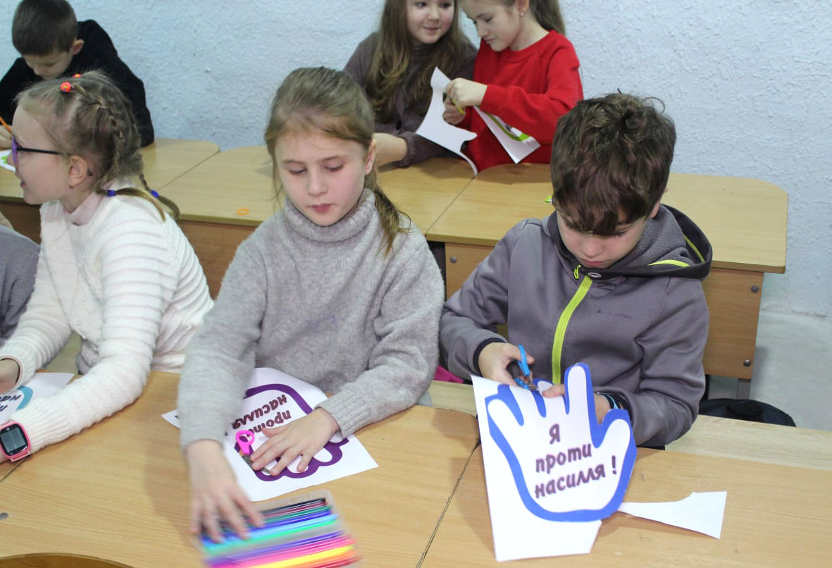 Інспекторка ювенальної превенції Полтавського райуправління поліції Дар'я Приходько, старша інспекторка сектору протидії домашньому насильству Лілія Овчаренко та інспектор Юрій Моргун говорили з дітьми на тему домашнього насильства, пояснили які бувають його види та куди звертатися за допомогою. Діти і поліцейські разом виготовили паперові долоньки, що символізують дитяче життя без домашнього насильства «Я проти насильства».