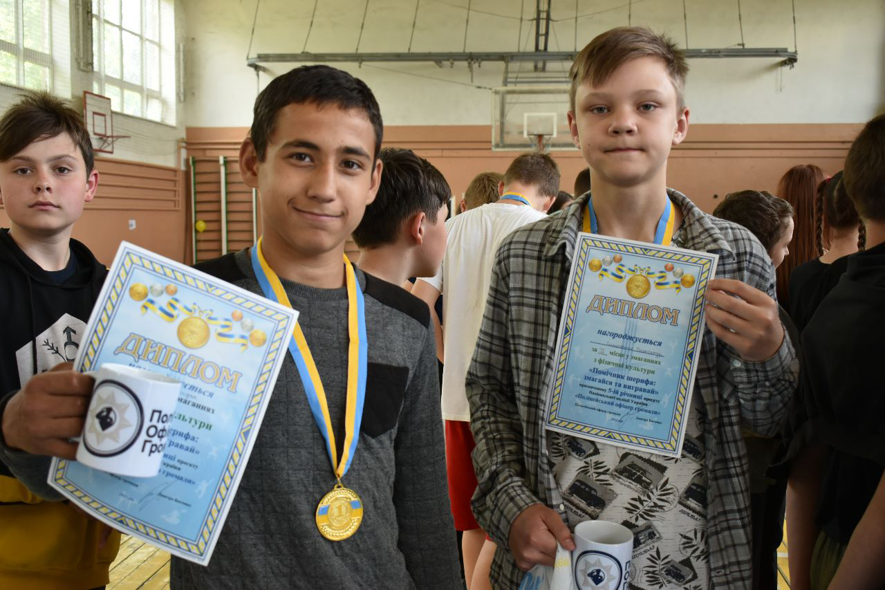 А від офіцера громади активні спортсмени, які продемонстрували завзятість та волю до перемоги, отримали подяки, солодощі та брендовані сувеніри: чашки та значки з логотипом «Поліцейський офіцер громади».