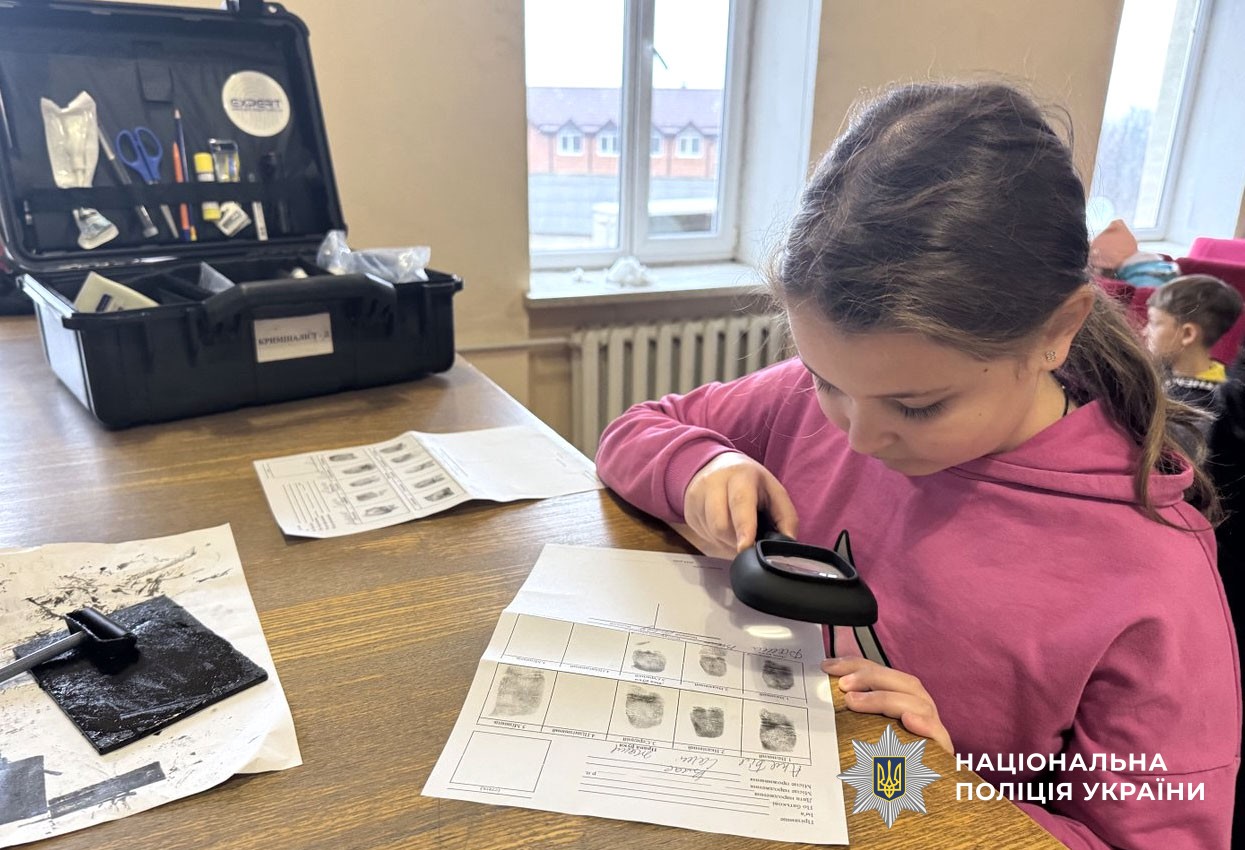 Особливий інтерес викликала розповідь про роботу спеціалістів-криміналістів. Дітей ознайомили зі складом криміналістичної валізи, до якої входять інструменти, засоби та матеріали, необхідні для огляду місця події, збору доказів та проведення початкових досліджень. Також учні дізналися про різні види експертиз та їх значення для розкриття злочинів.