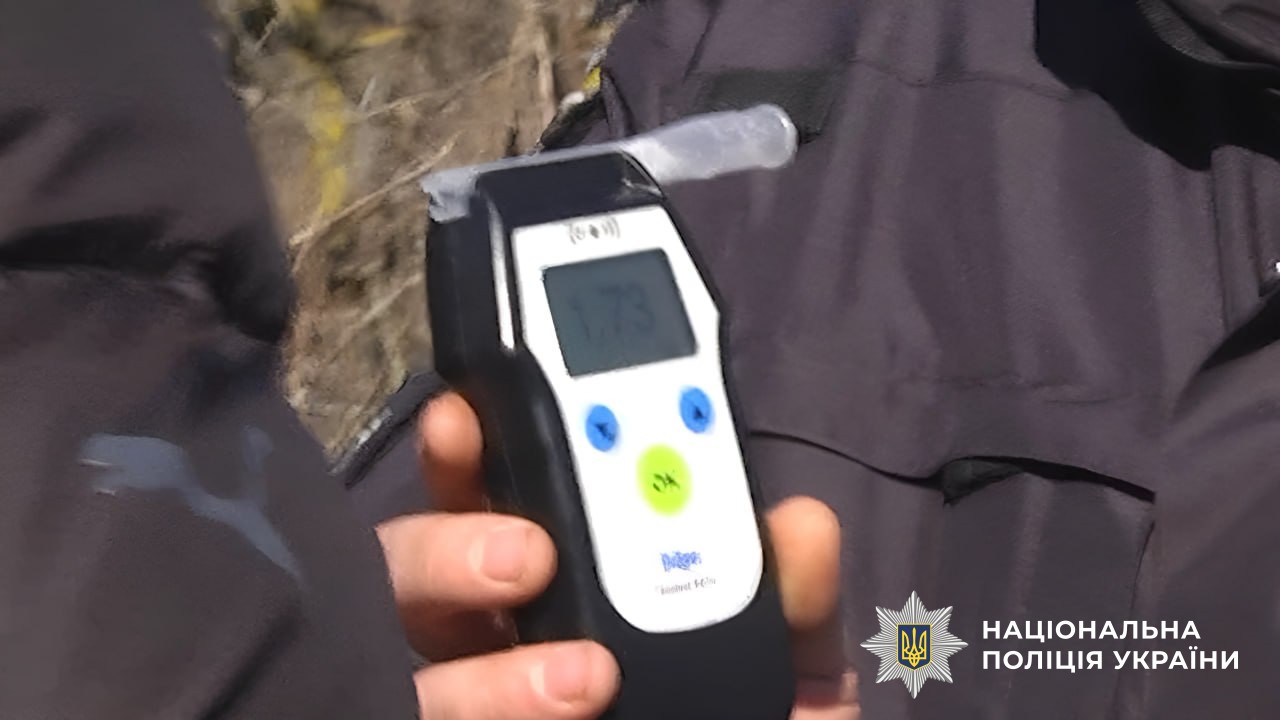 Під час оформлення ДТП поліцейські з’ясували, що водій перебував у стані сп’яніння. Перевірка на Драгері показала 1,73 проміле.