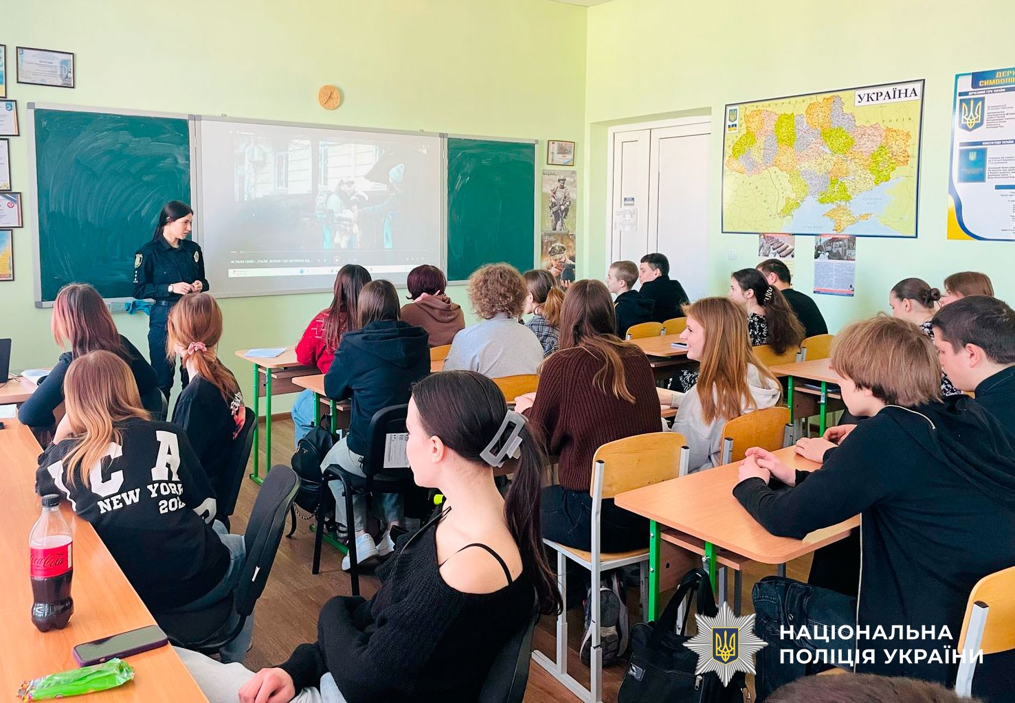 Інспектор ювенальної превенції Мирослава Солопун та старший інспектор сектору кадрового забезпечення Аліна Берещук спілкувалися з учнями 11 класу Піщанського ліцею та 9 класу Кривушівської гімназії.