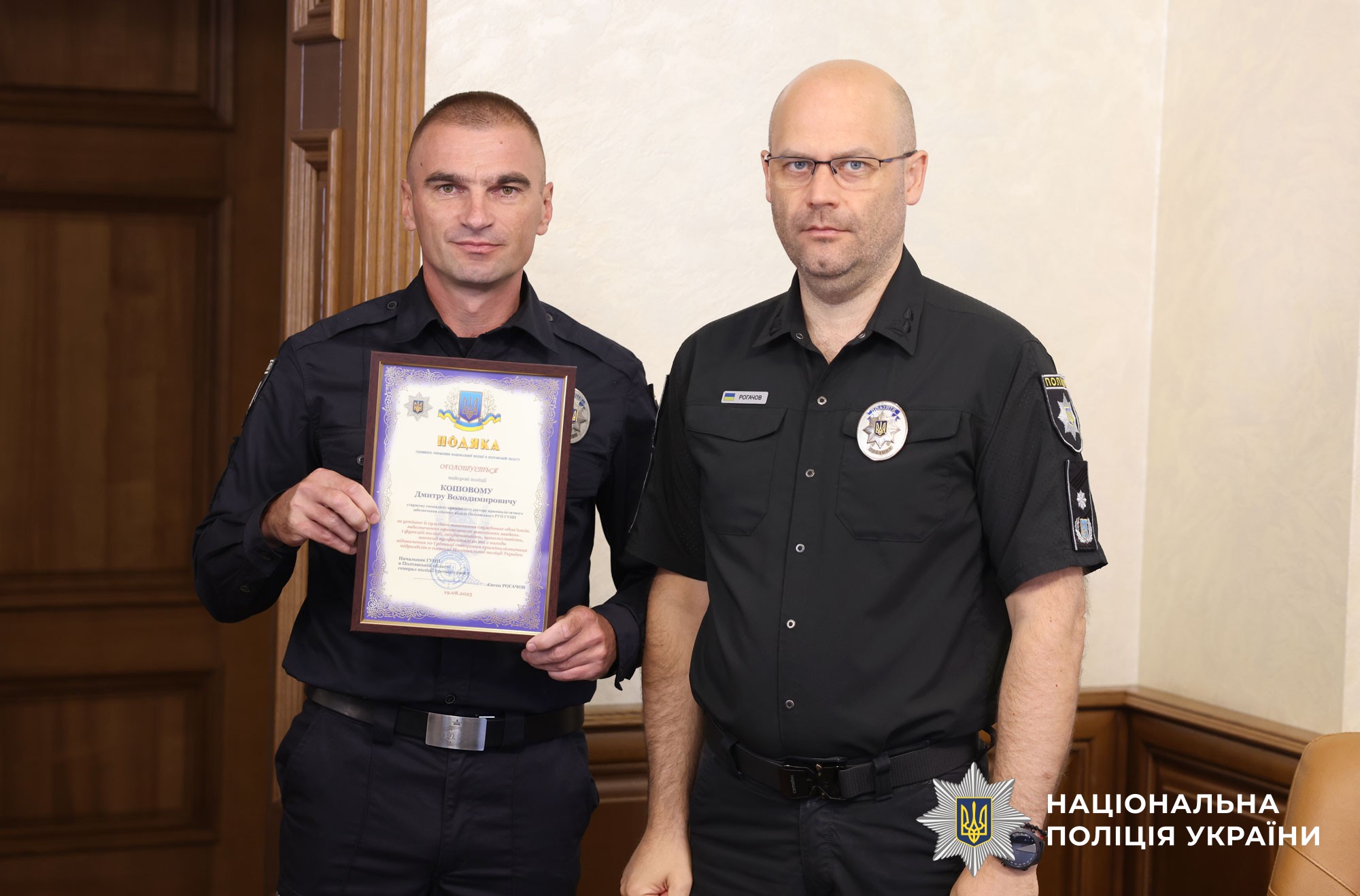 За результатами роботи генерал поліції вручив 11 кращим працівникам підрозділу грамоти Служби безпеки України та подяки Головного управління поліції області. Також старшому спеціалісту-криміналісту Полтавського районного управління поліції Станіславу Литвиненку присвоєно спеціальне звання – майор поліції.