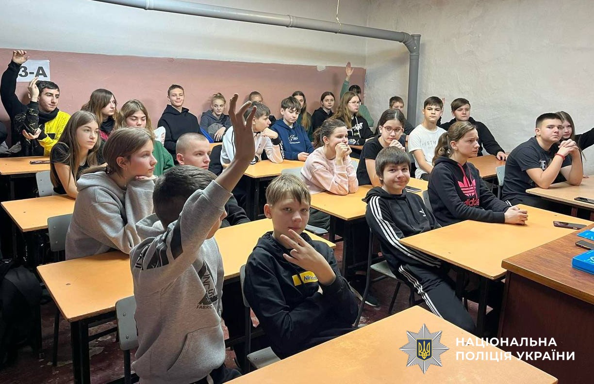 Крім того, під час уроку поліцейська та учні обговорили й проблематику булінгу (його види й прояви) та розглянули алгоритм дій щодо запобігання цьому негативному явищу в освітньому середовищі.