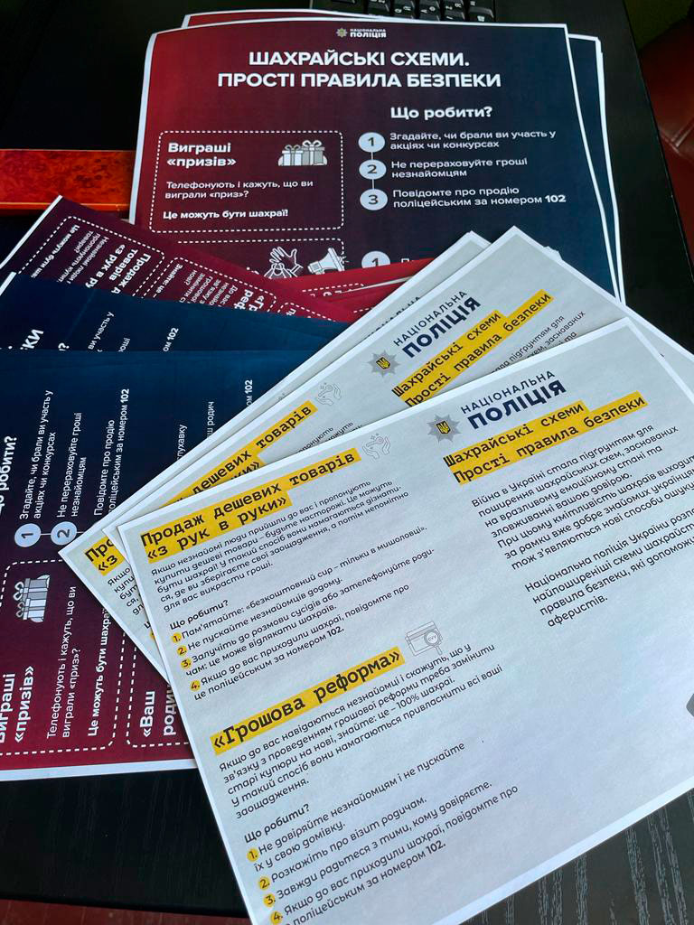 За 1,5 місяця інформаційної кампанії, що триває на території області, поліцейські роздали громадянам понад 7 тисяч листівок з прикладами найбільш поширених шахрайських схем та основними рекомендаціями як захиститися від шахраїв.