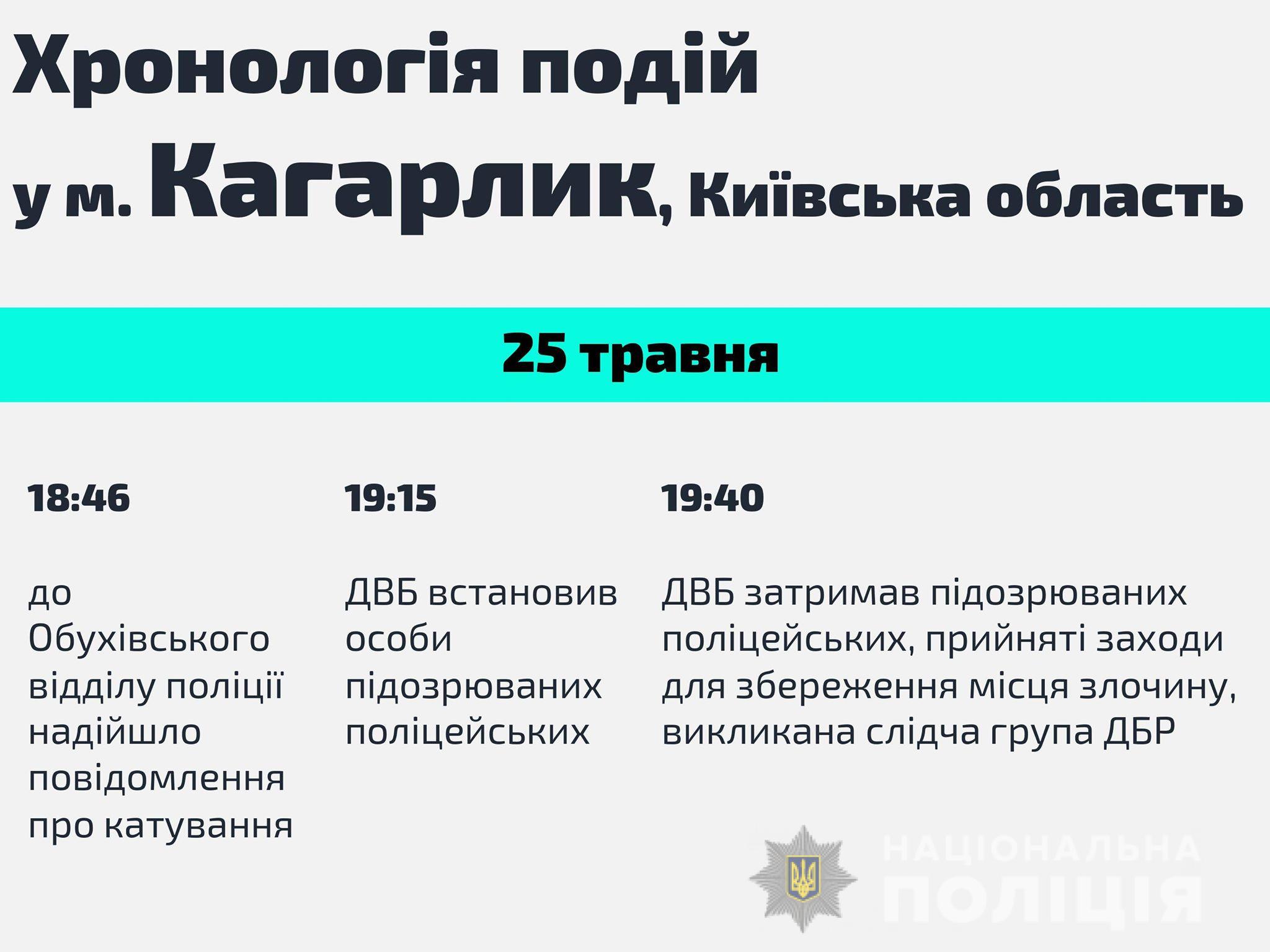 25 травня о 8:00, у понеділок, Голова Національної поліції Ігор Клименко підписав наказ про розформування Кагарлицького відділу поліції, відсторонення всього його керівництва, а також начальника Обухівського районного відділу поліції;