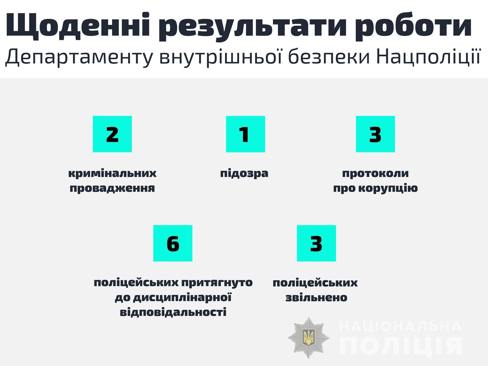 - розпочато 1037 кримінальних проваджень відносно поліцейських, у яких повідомлено 482 підозри. Це майже 2 кримінальні провадження та 1 підозра на день;