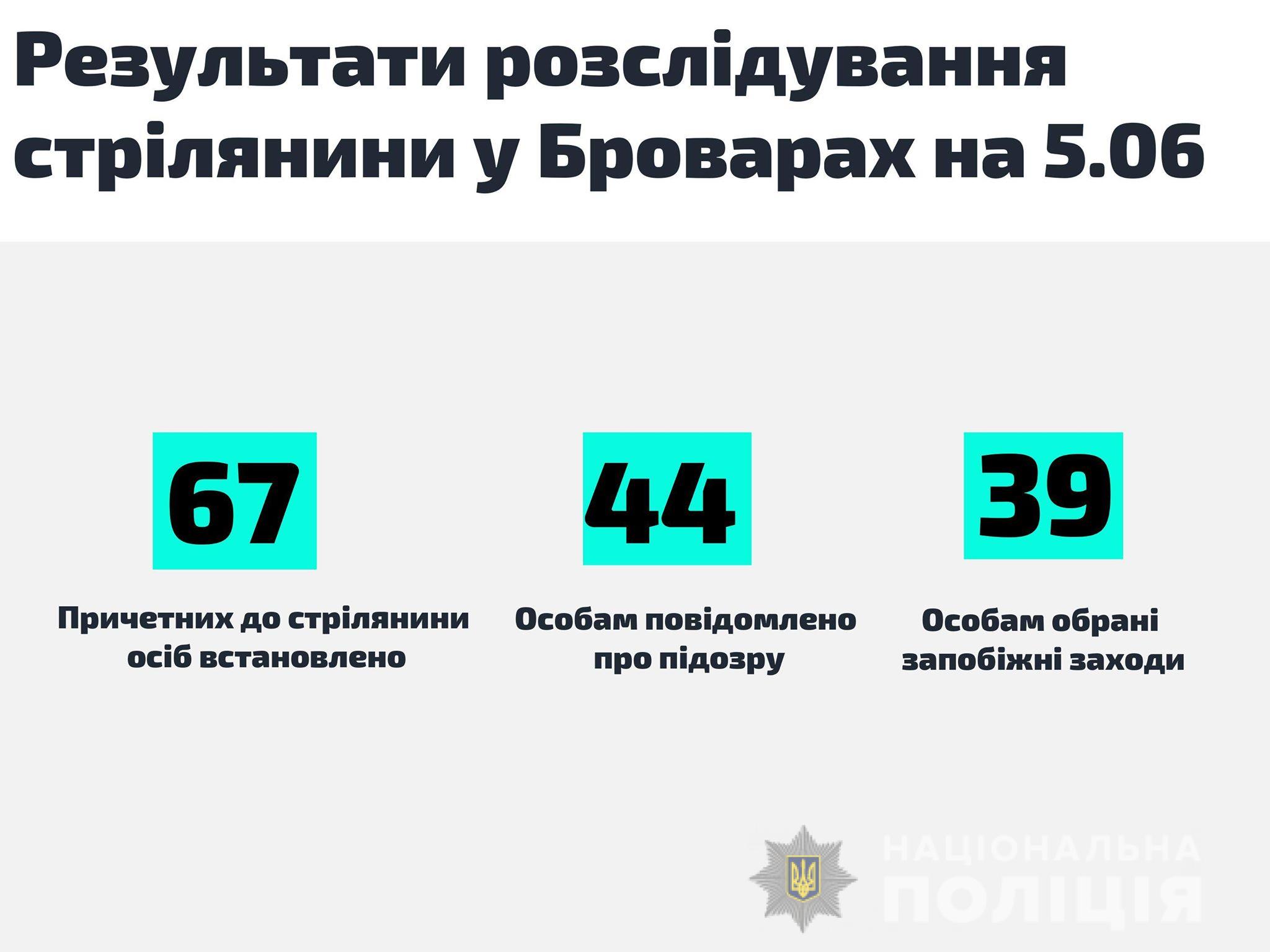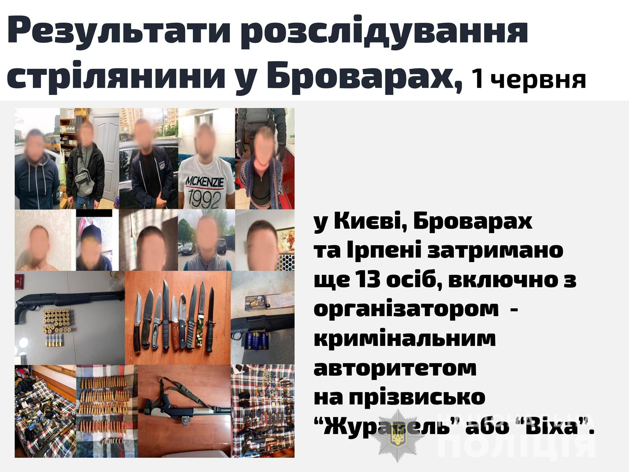 У понеділок 1 червня поліція провела ряд дій, у результаті яких у Києві, Броварах та Ірпіні затримано ще 13 осіб, включаючи ватажка – кримінального авторитета на прізвисько "Віха", він же "Журавель". Усі вони брали участь у перестрілці під виглядом місцевих перевізників.