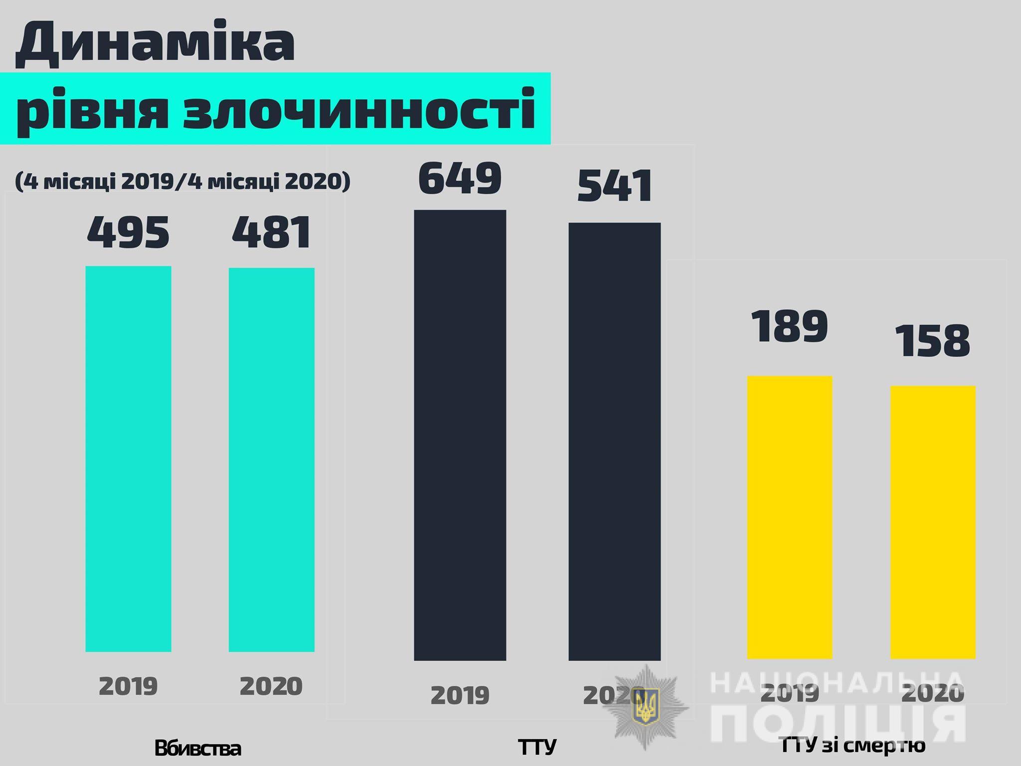 Якщо ж порівнювати показники за 4 місяці 2019 року і 2020 років, то ми бачимо, що кількість злочинів не зростає: